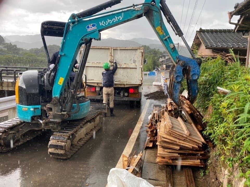 僕は球磨村の災害ゴミ撤去のために0.15の機械をダンプに積込み、4トンダンプ2台と共に、チーム愛と感謝の方が壁剥がしや床板剥がしをしてくれた家屋へ向かいました。