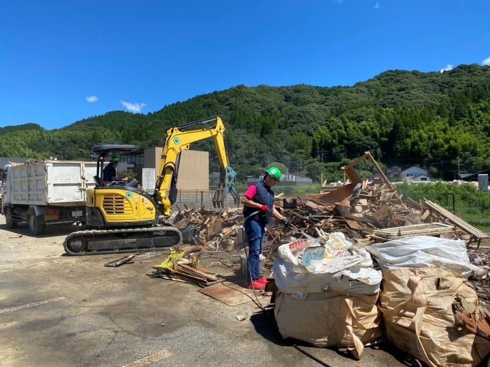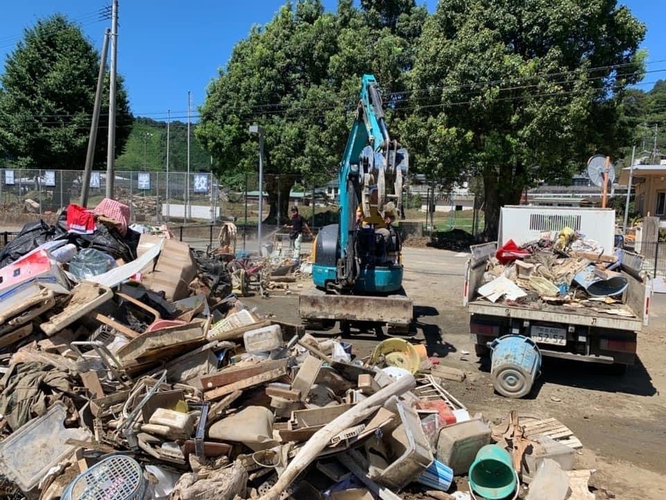 本日は球磨村渡の千寿園で勝手置き場に出された災害ゴミの撤去です!