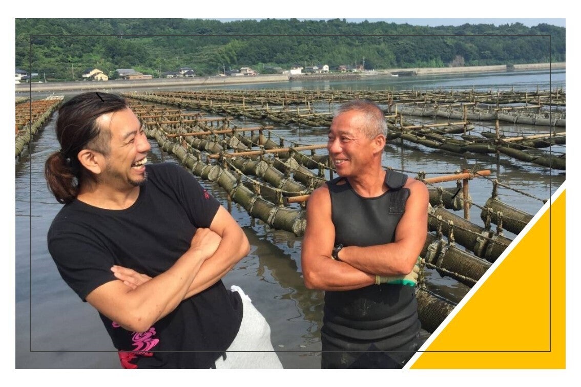 福岡糸島 上野さんと @牡蠣養殖所にて