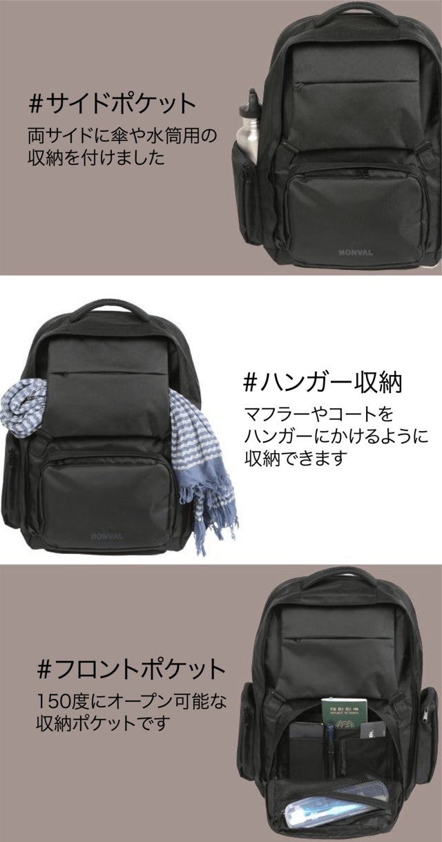 「2in1バックパック」は、「KONVAL」というデザイン名とレトロ感と現代を融合させたそのデザインについて、デザイン出願で守られています。