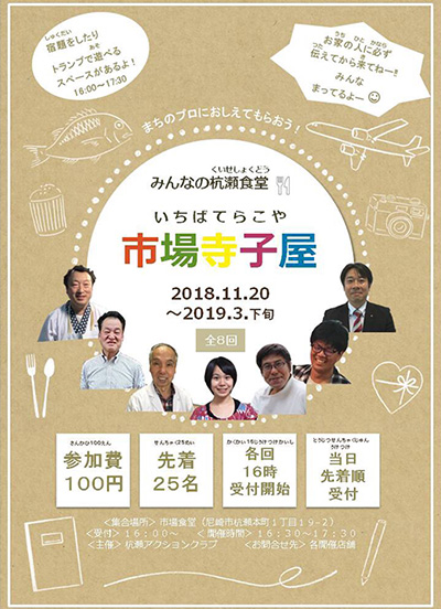 魚屋がイワシのさばき方を教えてフライを一緒に作ったり、和菓子屋さんといちご大福を作ったり、あましんは貯金の仕方を教えたり、杭瀬のまちにいるプロフェッショナルたちが企画した習い事イベントです。