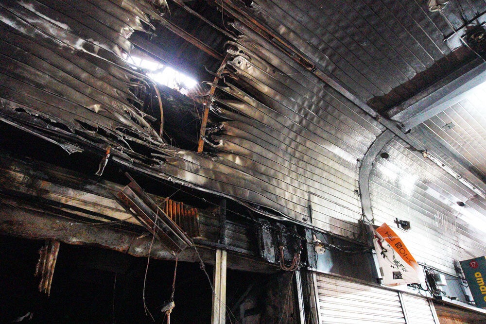 最近では若手経営者の新規開店が相次ぎ、お洒落な内装で若者の客足も徐々に増えつつあった矢先の火災でした。全焼したのは5件でアーケードのほか市場内の照明や冷房設備が使用不能に。