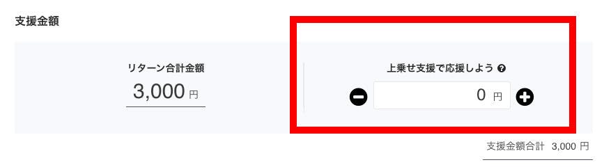 リターン品を選択後、以下画像の部分から追加の上乗せ支援も可能となりますので、どうか追加のご支援も宜しくお願い致します。
