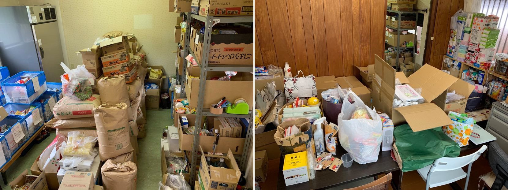 ▲多くの方からご支援頂いたおかげで倉庫がいっぱいになってきました。