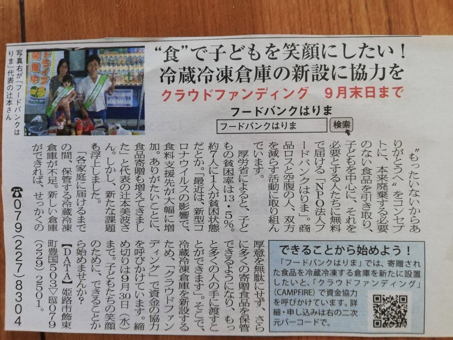 リビング姫路さんは、食品を保管するための倉庫を建築するためにクラウドファンディングに挑戦していることを掲載してくださいました。