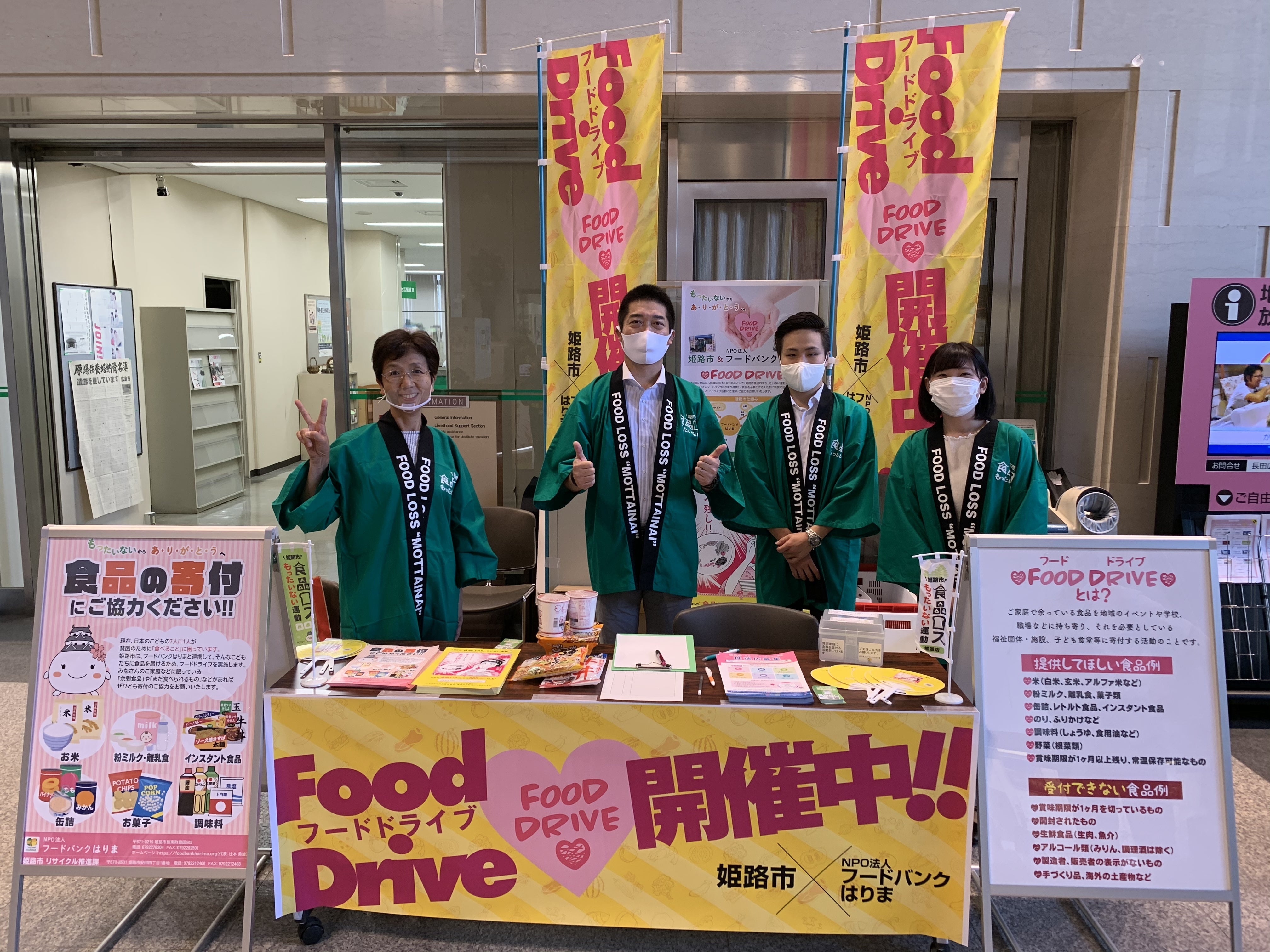 姫路市役所ロビーでフードドライブを開催しています。