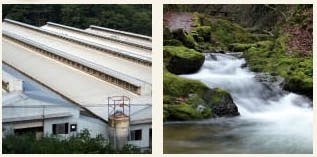水は自然の恩恵をそのままに、山の湧水を使用。農場は広島市の北へ40km、江の川へ注ぐ志路原川の源流に位置しており、鶏の飲み水は山の湧水をセラミックの浄水器でさらに栄養のある水に。
