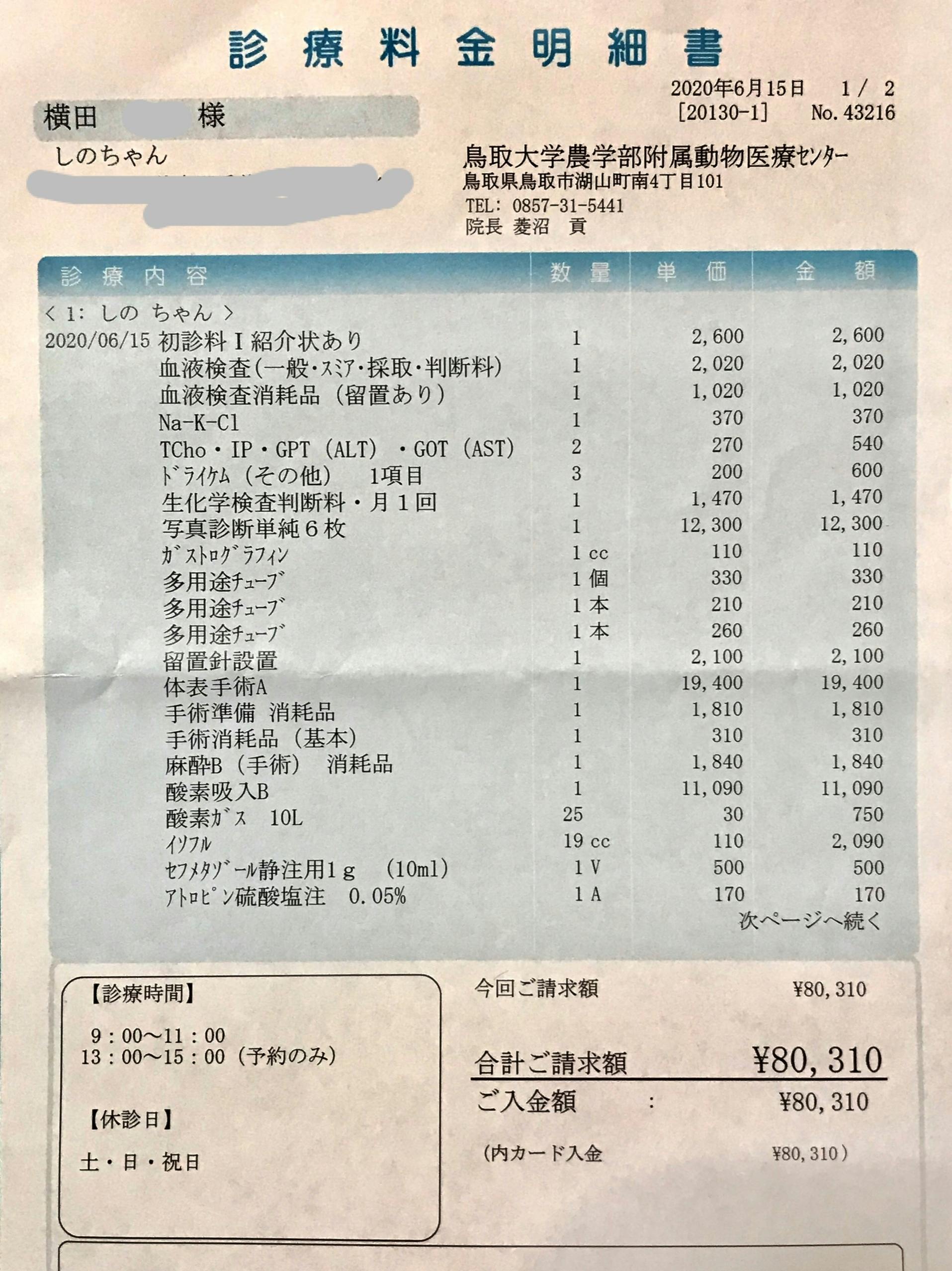 一度目の診察・手術は約8万円の治療費がかかりましたが、前回はコロナの給付金で賄えました。しかし二度目はいつ体調が急変してもおかしくない状況で早急な対応が迫られているため、さらに複数回の手術が必要だと言われました。