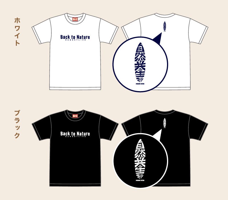 【Back to NatureデザインTシャツ】(S・M・L・XL・XXL/ホワイト・ブラック)
