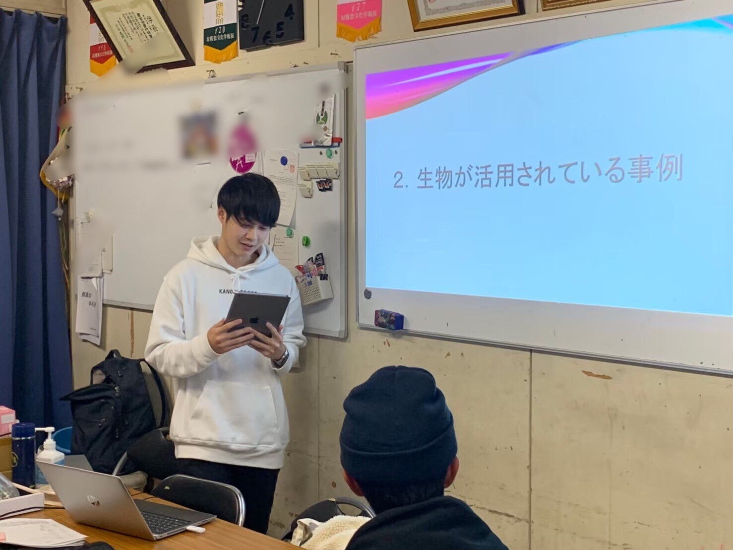 「我々が住んでいる日本では、食品廃棄の多さが昨今問題となっています。また、本来食べる事ができるにもかかわらず、捨ててしまう食品もとても多いです。このような食品を処理するために、日々多くのエネルギーが割かれています。このような現状を虫を使って打開したいと、私達は考えています。私達はまだ小さく力がありません。しかしながら、この問題に真正面から取り組むつもりです。皆様、何卒ご支援よろしくおねがいします。」