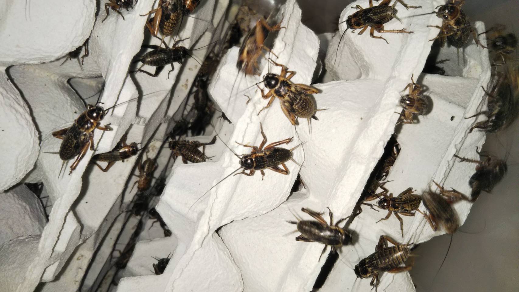 品残渣をコオロギのエサにした養殖研究を行いながら、コオロギの昆虫食販売スキー