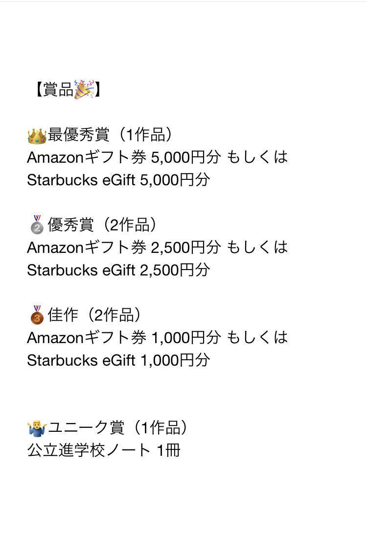 ・賞金総額...13,500円(ノート製作費1,500円を含む)