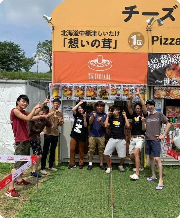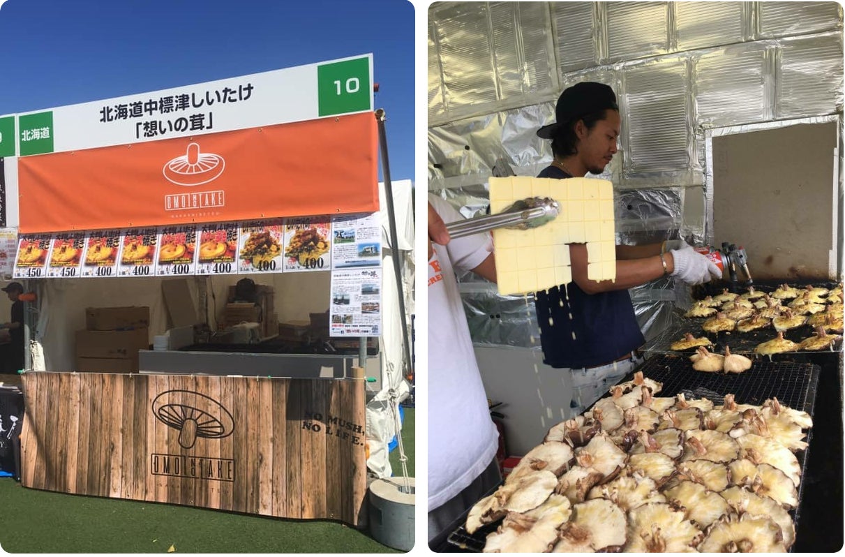 「想いの茸」の美味しさをもっとたくさんの方に味わって頂きたい!もっと、もっと皆様の笑顔を増やしたい !その想いで発案した「大判しいたけチーズ焼き」や「大判しいたけバター醤油焼き」は、手のひらサイズの大判しいたけに、中標津ゴーダチーズや北海道バター、日本の最東端、歯舞漁協のはぼまい昆布じょうゆを使い、私たち生産者が備長炭で丁寧に想いを込めて焼き上げた、北海道の食材をたくさん使用した人気商品です。おかげさまで「想いの茸」は様々なイベントに出店させて頂けるようになり、フェス飯やフードイベントの新名物と呼ばれるようになりました。