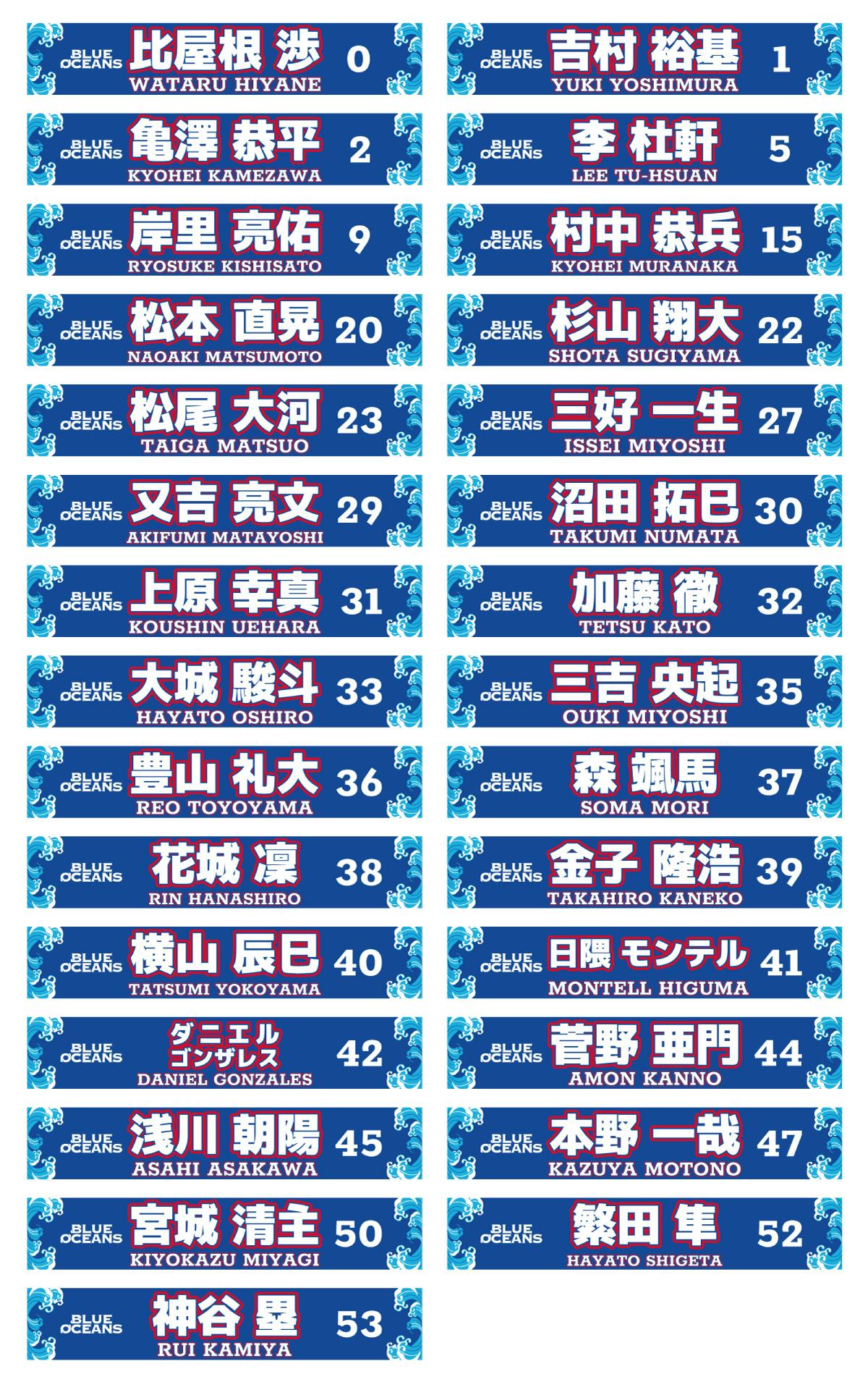 選手オリジナルマフラータオルで琉球ブルーオーシャンズへ応援をよろしくお願いいたします!