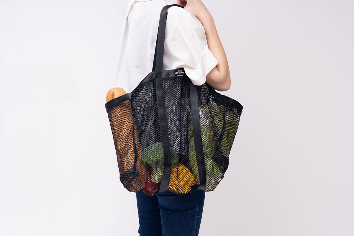 お買い物をスタイリッシュに、かわいいレジカゴバッグよりちょっとシンプルにスタイリッシュなレジカゴバッグをチョイス。