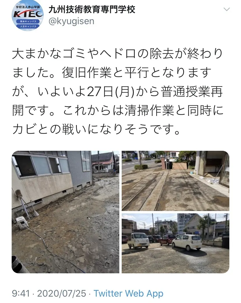 大まかなゴミやヘドロの除去が終わりました。復旧作業と平行となりますが、いよいよ27日(月)から普通授業再開です。これからは清掃作業と同時にカビとの戦いになりそうです。