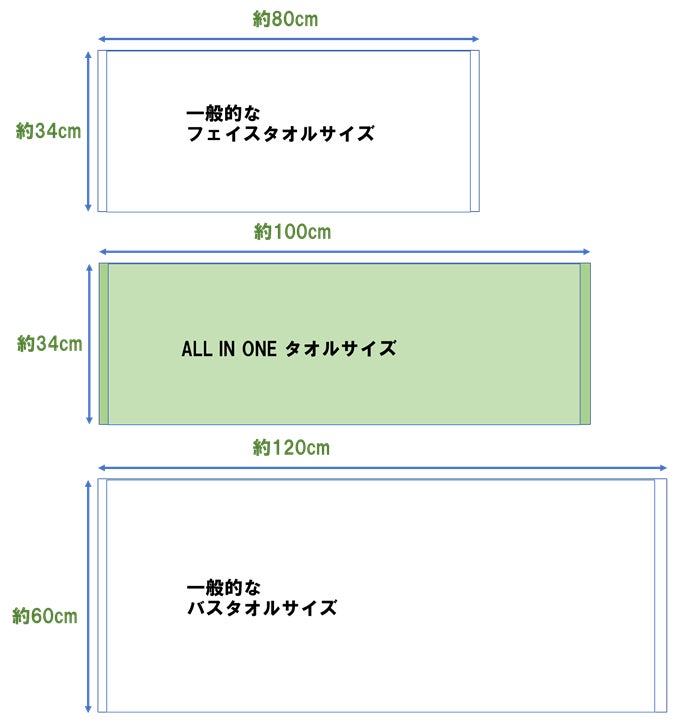 一般的なフェイスタオルサイズよりも長い特注サイズの為、これ1枚で髪や顔だけでなく、体も拭く事が出来ます。一般的なバスタオルよりもコンパクトなので、旅行や公園でのランニング時も邪魔になりません。