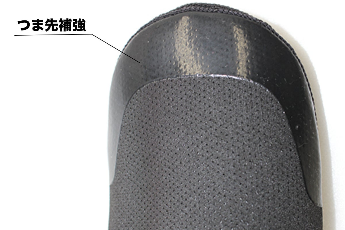 室内での運動にも対応できるようにつま先部分にラバー素材を使用し補強。見た目よりも少しでも長く愛用してもらいたいという気持ちからこの仕様にいたしました。※デザイン変更の可能性がございます