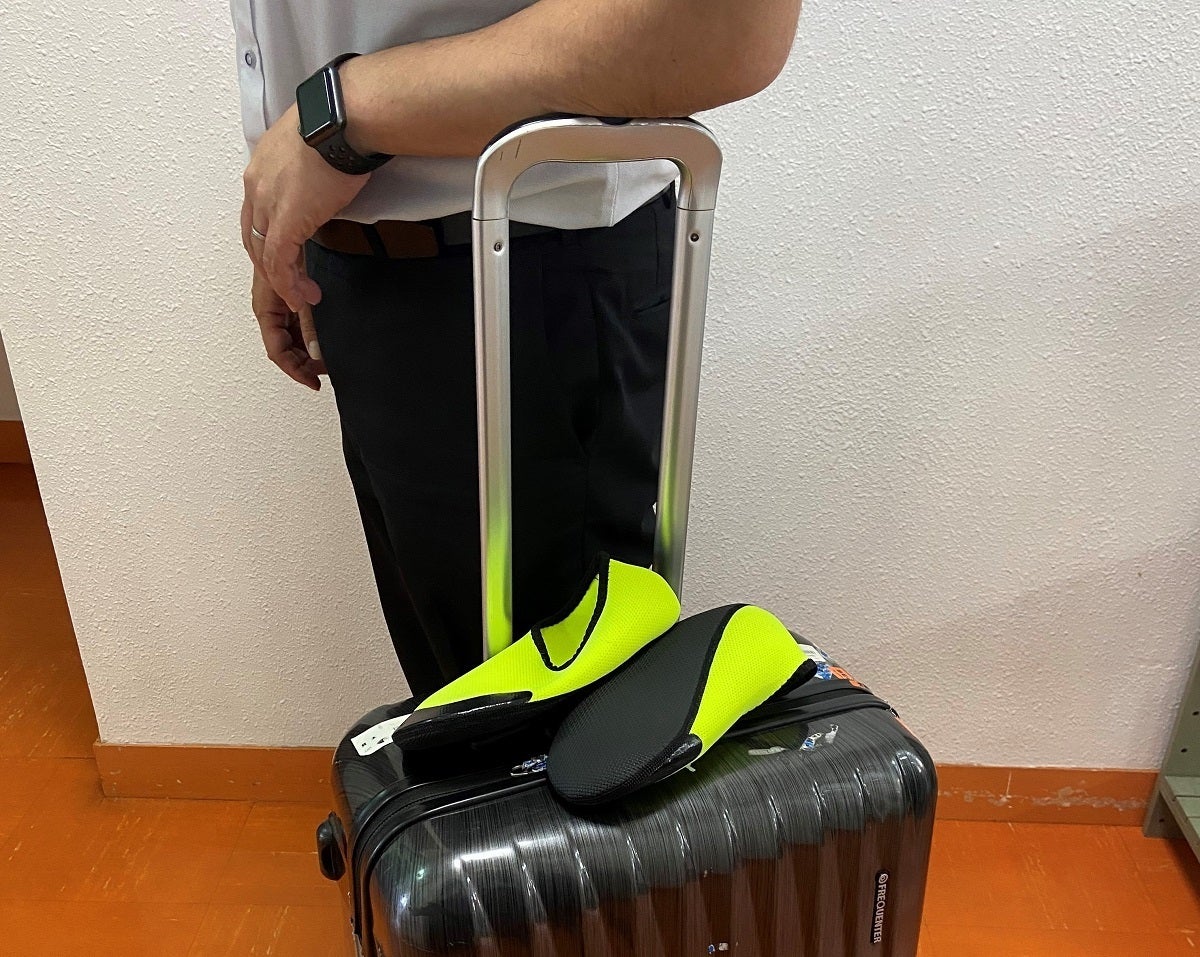 移動中ムレや疲れを感じた際に靴を脱いで裸足になりたいけれど他人の目が気になりませんか。その時にこのシューズに履き替えていただき、他人の目を気にせず足の疲れを少しでも癒して頂きたいです。