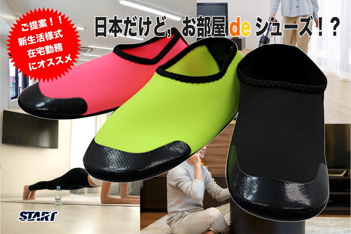 弊社の営業マンは外回りを中心に靴をすり減らして歩きまわる、そんな昔ながらの営業スタイルを続けてきてまいりました。しかしこの外出自粛によるテレワークに切り替わった途端、慣れない家での仕事に右往左往してしまいストレスを皆感じてしまったようです。きっと今まで外で仕事をされていた方々も同じ気持ちなのではないかと思い、この部屋で使える靴を開発することにいたしました。厳しい状況の中でも戦うサラリーマンに、今まで以上に家事に追われ大変になってしまった主婦(主夫)の方に、おうち時間を少しでも快適にすることはできないか?まず思い浮かんだのが靴下やスリッパでしたが、室内にいる際滑ったり脱げやすいなど少しのストレスを感じたことを思い出し、中間となるものをと考えた結果、この「お部屋deシューズ」が誕生いたしました。
