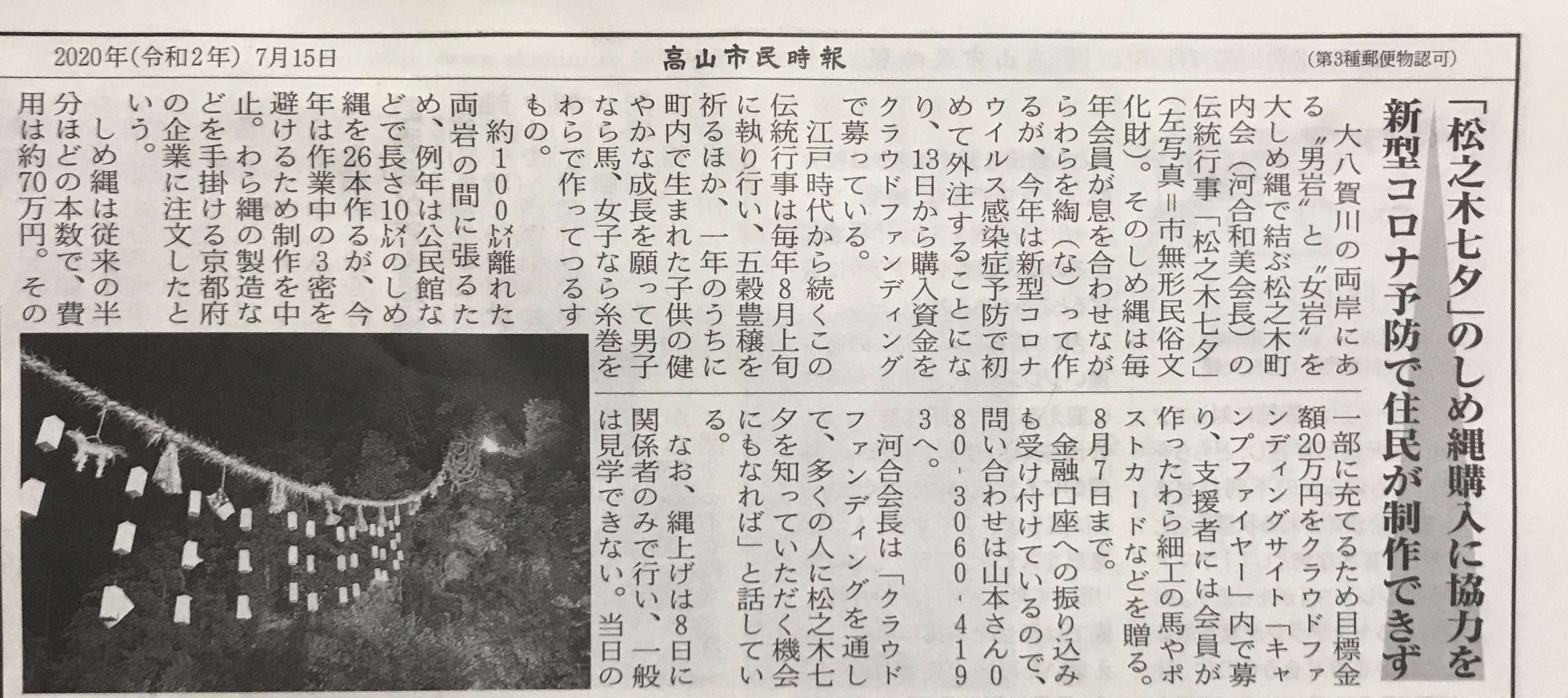 高山市民時報(7/15)に掲載していただきました。