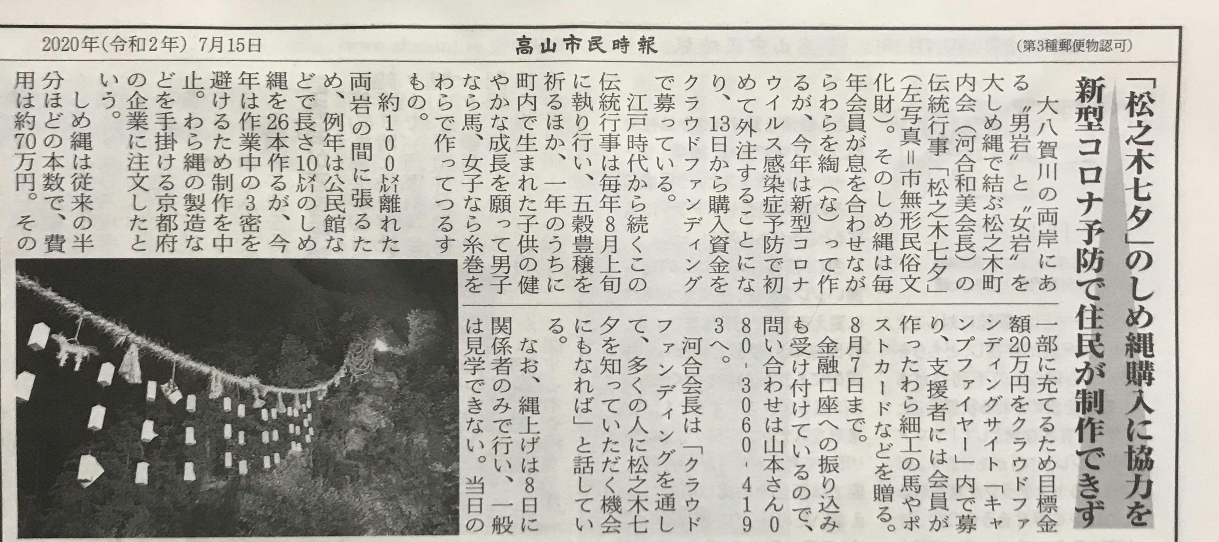 しかし、高山市民時報に掲載いただいたように、例年の半分の本数の購入でも、約70万円の費用がかかります。