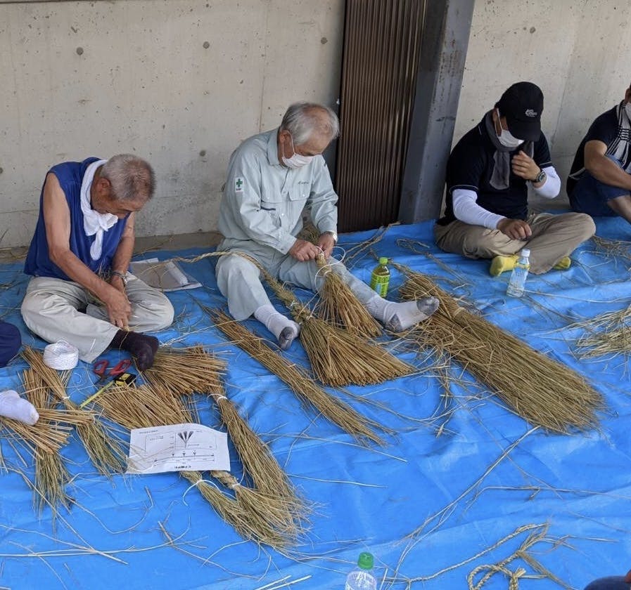 8月2日(日)、大しめ縄に吊るす藁房(七五三)を作成しました。