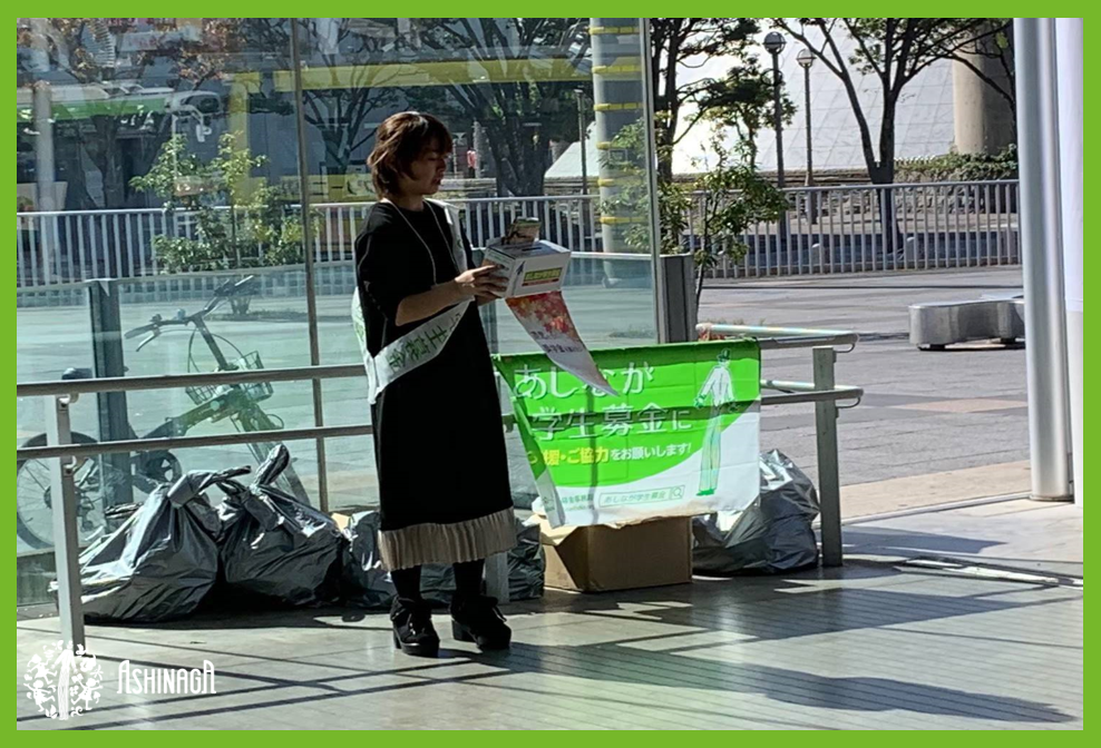 私はこの活動で、自分と同じように遺児たちにも、「遺児だから諦めるしかない。」ではなく、1人でも多くの遺児たちが夢を叶えられるように、街頭に立ち募金活動を通して多くの人達にこの活動の存在を知って頂き、多くの才能を持った人達のために少しでも手助けをしたいと想い、この活動に参加しています。