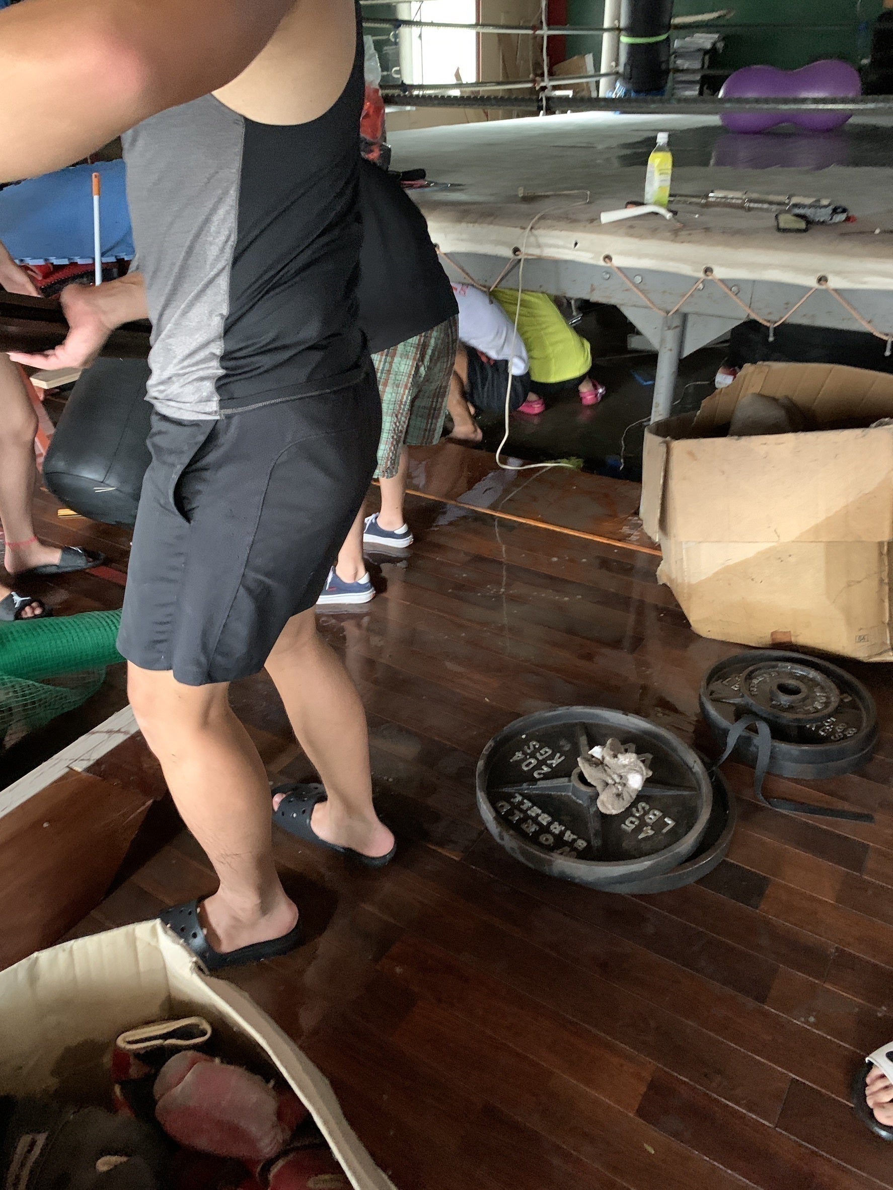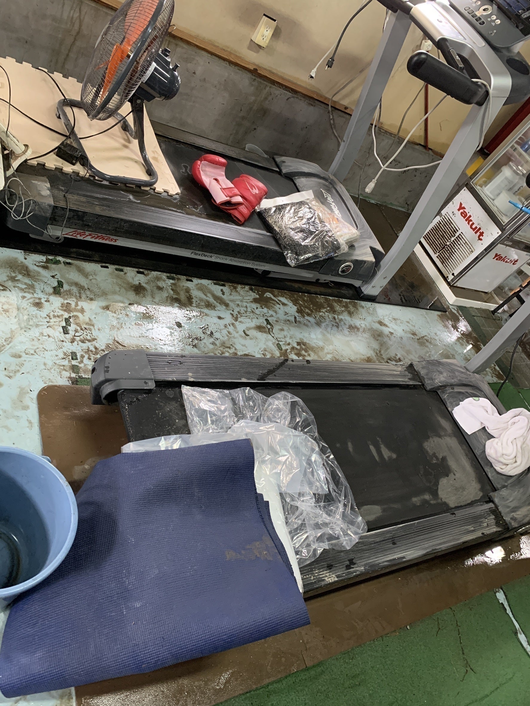 コロナ騒動で遠征が制限され、練習場所がジムのみという状況の中、先日九州南部の集中豪雨が起こりました。ジムは床上浸水の被害を受け、グローブを始めとした練習用具・ジムの全てのランニングマシーンや電気器具が使用不可能という状況です。また、床の張り替えなども今後必要になる予定です。
