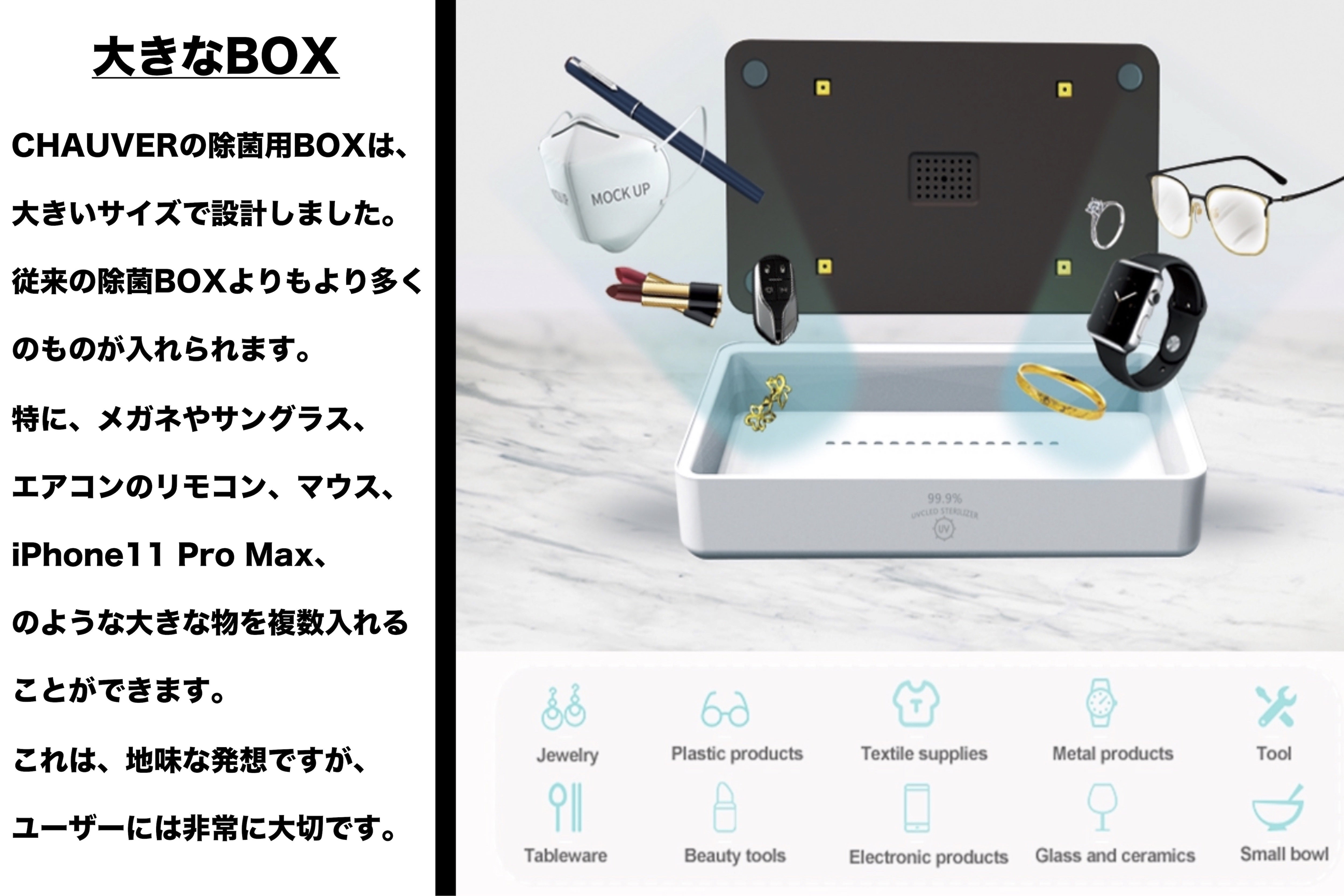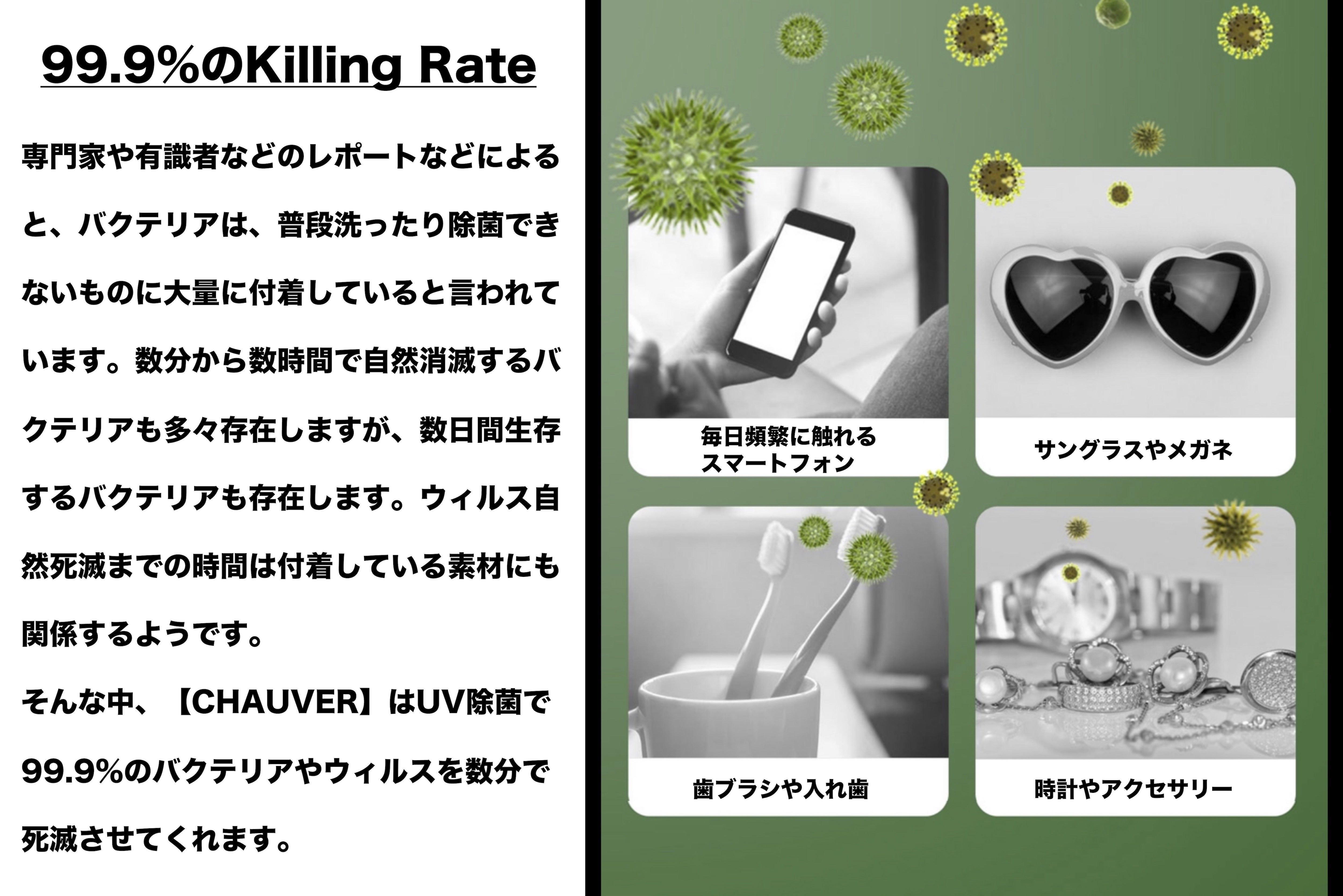 昨今の情勢もあり、今後は世界共通で様々なウィルスと共存していかなければなりません。そんな中、ご自身の感染を防げるのはご自身の対応に全てがかかっています。私どもは主に充電関係の商品を主要商品として取り扱っておりますが、この度世界最新のCHAUVERをリリースできる運びになりました。当商品は、日本国内だけでなく、海外マーケットでもリリースする予定です。当プロジェクトでは割安でお申し込みいただけますので、是非このチャンスにご検討ください!