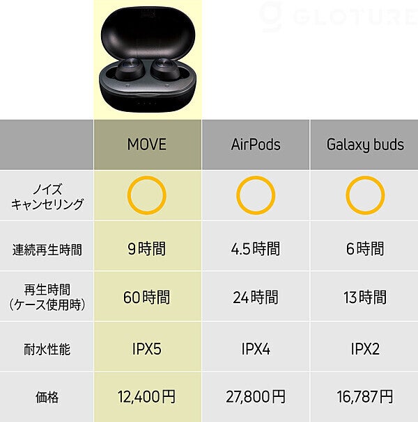 同クラスの製品と比較してVAIN MOVEはバッテリー寿命、耐水性能、価格の面で魅力的な製品です。