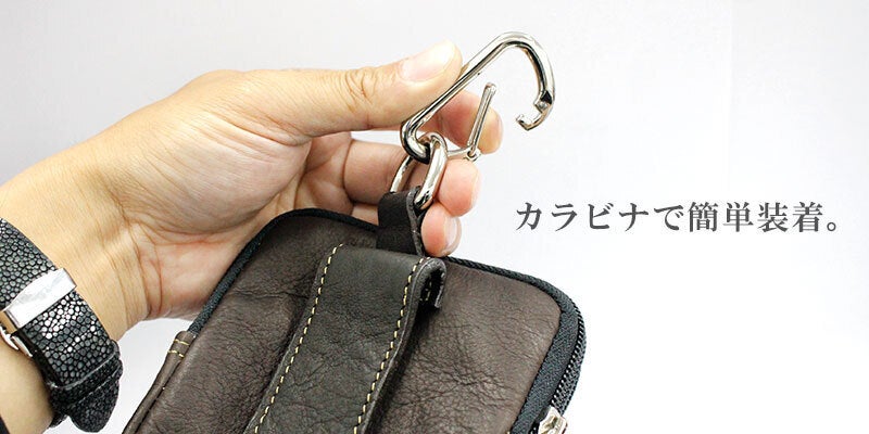 夏など収納の少ない季節に物を持ちたくない時は、付属のカラビナでベルトループに取り付けるだけなので、簡単に装着できる上、ポケットに何も収納することなく手ぶらを実現できます。