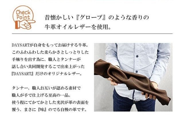 昔懐かしいグローブのような香りのする革で、とてもキメが細かく柔らかいのが特徴です。