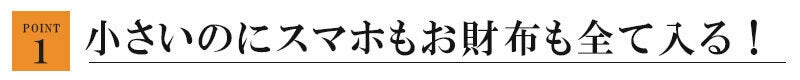 今回ポイントとなるのがまず、このサイズ感でもスマホやお財布(2つ折り等の小さい財布)が収納出来る事。