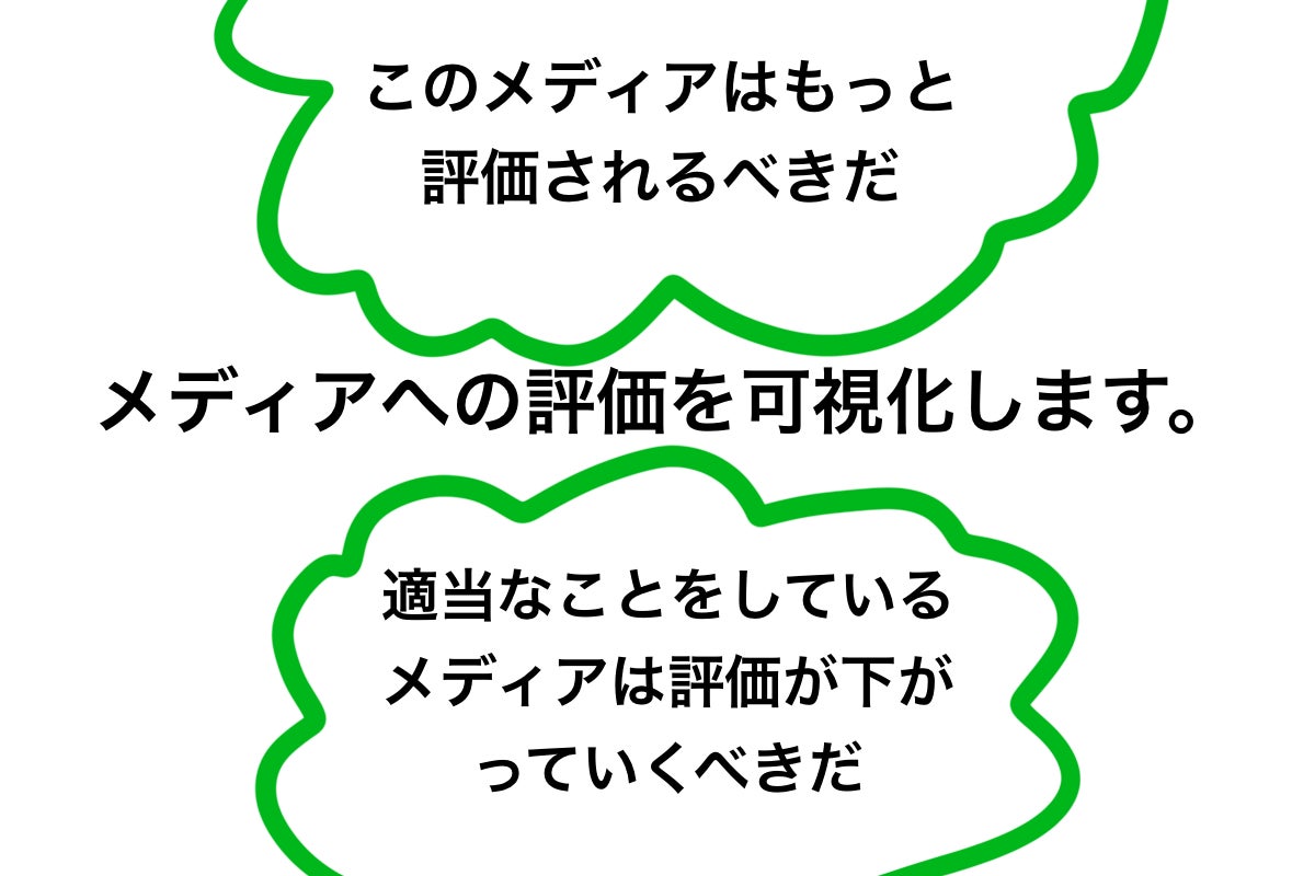 メディアへの評価を可視化する事で、情報を得る人々がより、自分にあったメディアを探せるような仕組みを作りたい。また、情報に対して真剣に向き合っているメディアが評価される仕組みを作りたい。