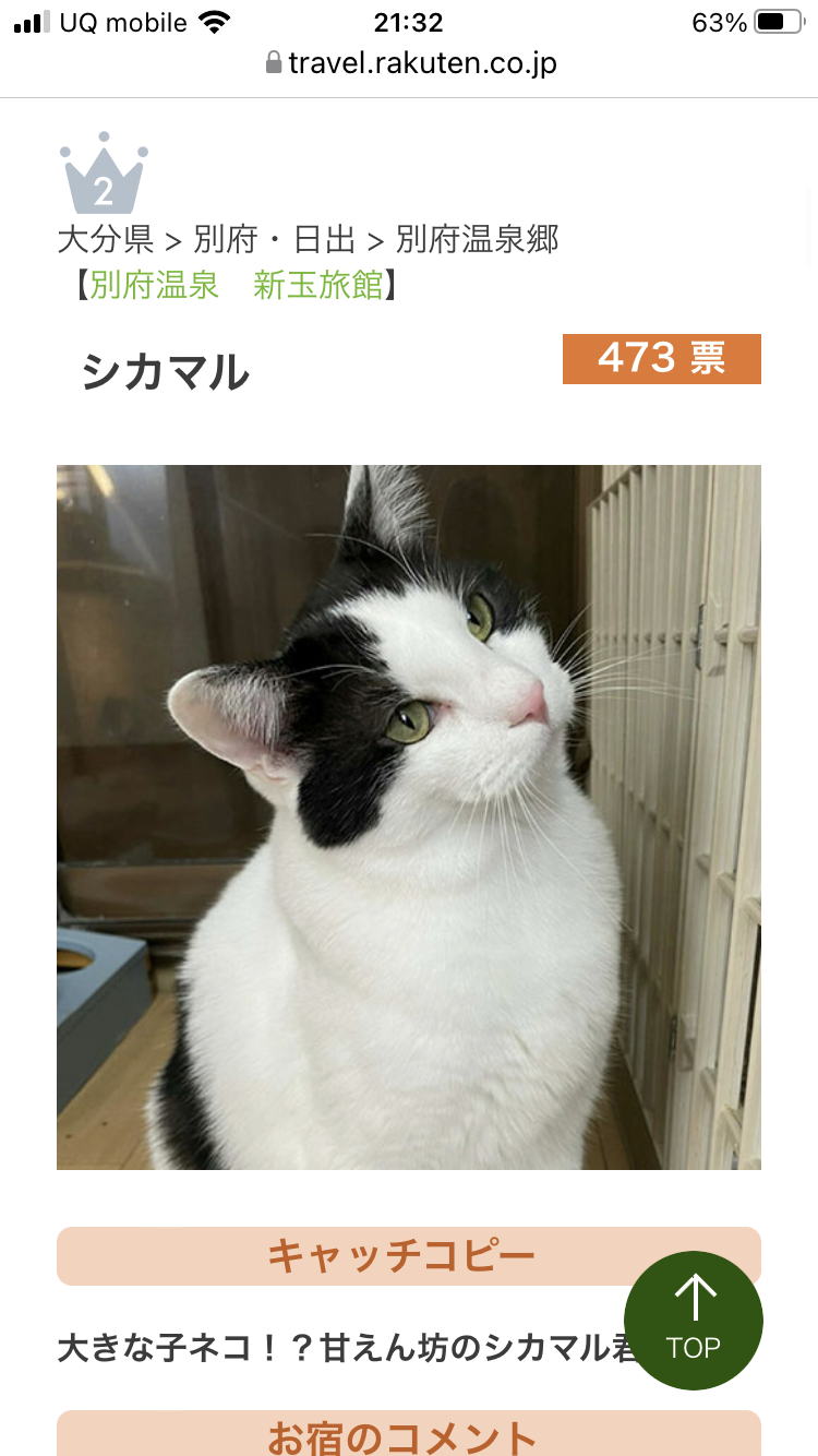 トップ画像は今年度の看板猫ランキング第2(にゃん)位に輝いたシカマル君です。↓シカマル君の兄弟のナルト君写真が古くてすみません(;^_^Aこれは今のナルト君今のシカマル君お前誰?すみません、お邪魔しましたf^_^;シカ君のおみ足可愛い可愛い可愛い♡現在のアマグリちゃん高齢になり、かなり弱っているそうです。現在いちばん医療費がかさむとのこと。鼻の通りが悪く、寝ているとズーピー聞こえてきます。アレルギー&てんかんのあるベンガル種モーガン君はお医者様から薬のリスク考えやめてみましょうと言われやめたら1年ぶりに発作が∑(゚Д゚)↑のカーペットで女将さん寝たりするそうです。モーガン君がガラス越しに見える廊下で女将さんが寝て、夜中もアマグリちゃんに付き添って寝たりしているそうです。↑何かあった時にどちらにも処置できるようにこの寝袋で。モーガン君も女将さんの姿が見えると安心するそうです。女将さんの新たな活動と新玉旅館の現況についてのご報告女将さんのご依頼により又舞い戻って参りました。長文になりますが、よろしければご一読ください。前回のこちらのクラウドファンディングから、もう1年以上が経過しました。ご支援くださった方には改めて心から感謝申し上げます。世間では部分的に経済も回復傾向にあるようですが、新玉旅館は現在もコロナ禍にあり、お客様の宿泊状況もまばらとのこと。現在も経済的にひっ迫しているそうです。そんな中、新たなご縁があり、新玉旅館の猫達に対する2度目のクラウドファンディングを立ち上げることを申し出てくださった方が現れたそうです。https://readyfor.jp/projects/aratama-ouen一時期は別府市内の方から多頭飼育崩壊の相談を受け、そこから引き取ってケアした猫達が沢山いましたが、女将さんとご親族やボランティアの方達のご尽力により、ほとんどの猫に里親さんを見つけることができたそうです。それらは譲渡予定の子達のため、勿論自費です。更には他の地域から入り込んだのか、又は棄てられたのか、普段とは違う野良猫が近所を徘徊するようになったため、その子達の避妊・去勢もしたそうです。現在、餌場や糞尿の管理をしながら、地域猫として以前からいた子達と合わせて外での面倒を見ていらっしゃいます。普通は地域猫の手術代は助成金が出ますが、サクラ耳にすると里親さんが見つかりにくくなるため、譲渡の可能性を考え今までもその子達も全て自費で賄ってきたそうです。更にはその子達の日々のご飯代も掛かります。保護猫・地域猫活動の経験が長いがゆえ、新玉旅館にはレスキューのお願いが舞い込んできます。そんな不幸な猫達を見過ごせず現場に駆け付けたら、実はそこの住人の方やその方の生活改善のためのお部屋の環境整備、ご家族のケアが必要なこともあり、実際は人も猫も助けていらっしゃるのだな、とお話を伺って感じました。この2~3月は野良猫繁殖問題を解決するための活動する場として、主に別府市内の共有施設を建設する目的で女将さんが代表となり、ボランティアの方達とクラウドファンディングをされました。その趣旨にご賛同いただけた沢山のご支援者様のおかげで第一段階としての目標金額に達することができたそうです。ですが、それは旅館とは全く別の“ボランティアの方達との共同活動”であり、新玉旅館自体はまだコロナ禍により猫費が圧迫しているとのこと。しかもその共同の活動も第一歩に過ぎず、目的別に全三棟の施設建設を目指し、旅館業と猫のお世話とを並行して動かれているそうです。猫のためにはどこまでも突っ走ってゆく女将さんの身体が心配になります。https://youtu.be/hNJ8uXqqQaw↑にゃんたまチャンネルより女将さんから皆様へ概要欄にリンクが貼ってあります。今日、この報告を公開しようと女将さんに連絡したところ、またまた新たなレスキュー依頼が入ったとの返信が!別府市に隣接する市町村の公園でプチプチ梱包材でぐるぐる巻きにされ、ナイロン袋に入れられた子猫4匹が発見されたそうです∑(゚Д゚)体重がそれぞれ160g位しかなかったらしく、この1週間が山場とのこと。女将さん曰く「絶対に育て上げてみせます」この3匹は体重が増え現在200gになったそう。この子は食も細く体重が減ってしまったそう。クロちびちゃんはオシッコが出ない病気らしく少しでもオシッコさせなさいとお医者様から言われたそうですが中々出ないみたいです( ; ; )4匹共元気になって優しい里親さんの元で幸せになりますように。先日撮ったミルクちゃん人の背中が何故か好きみたいです。おんぶされている赤ちゃんみたいですね。ミルクちゃんはもうおばあちゃん、、、でもね猫は永遠の赤ちゃんなんです。前回のクラウドファンディングが終わってから再度のクラウドファンディングを勧めてくださるご支援者の方もいらっしゃいましたし、女将さんからも依頼されました。私自身は手数料がかからない継続支援やファン支援がいいのではと思い、そ