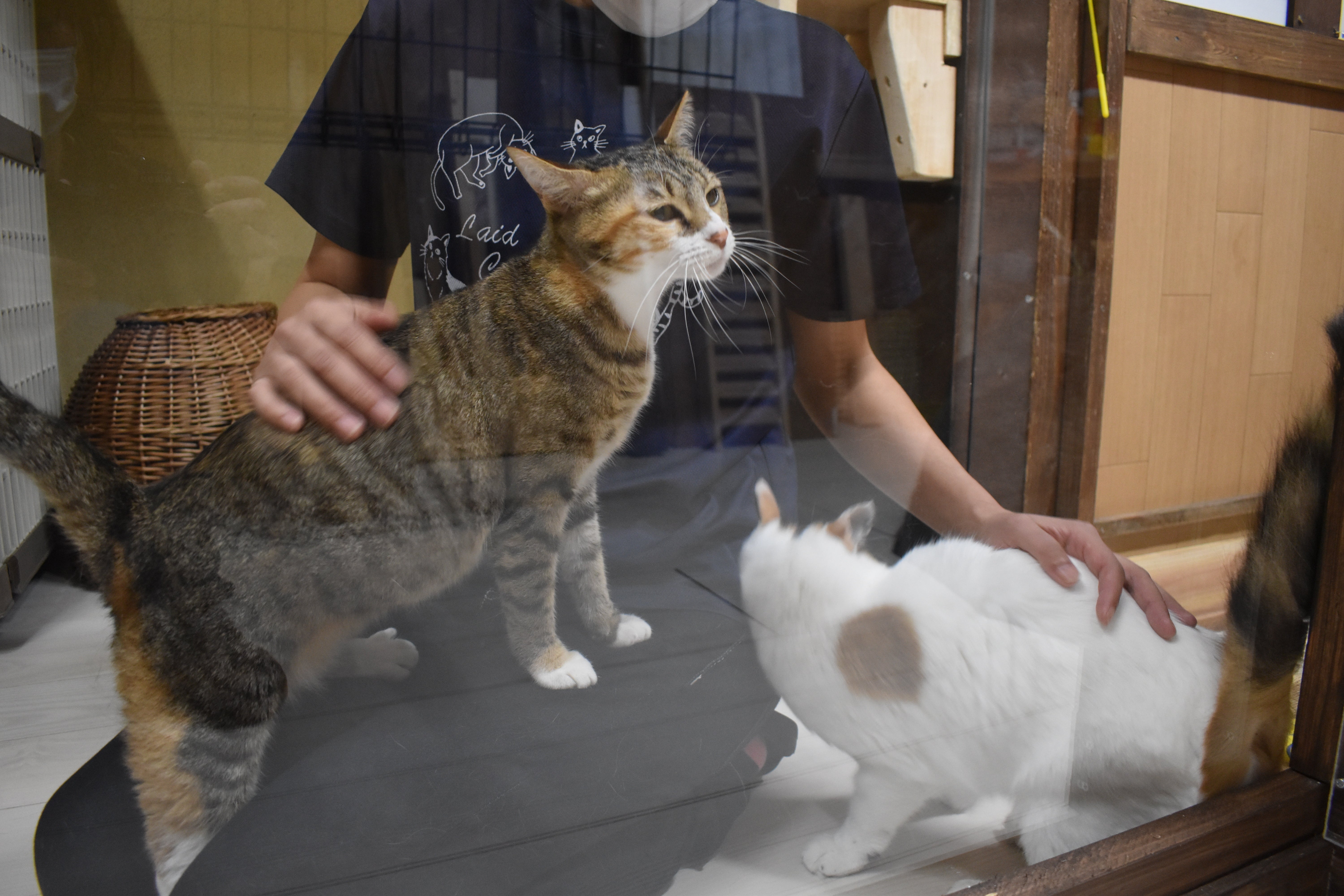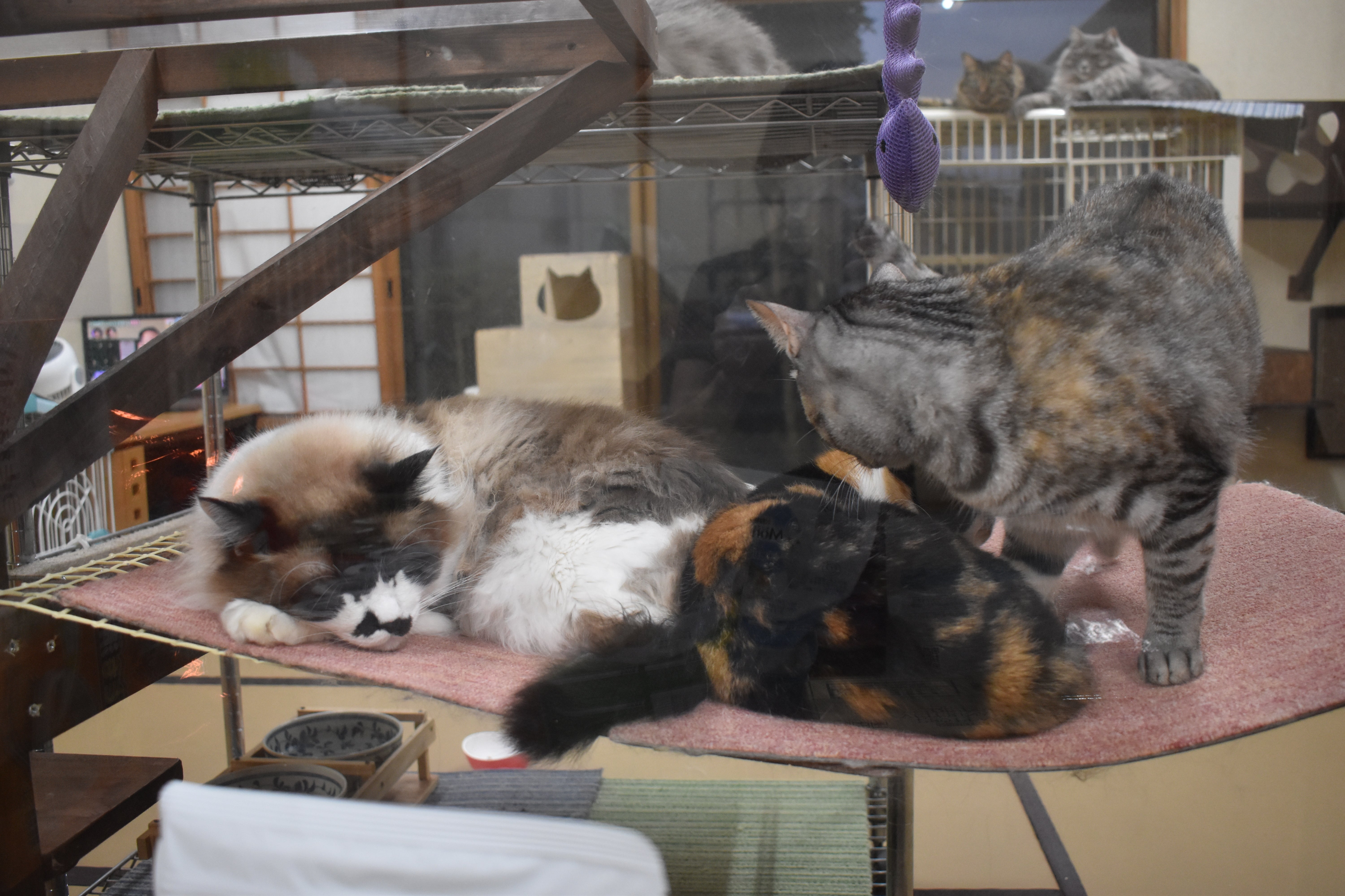 アクリル板越しの猫団子