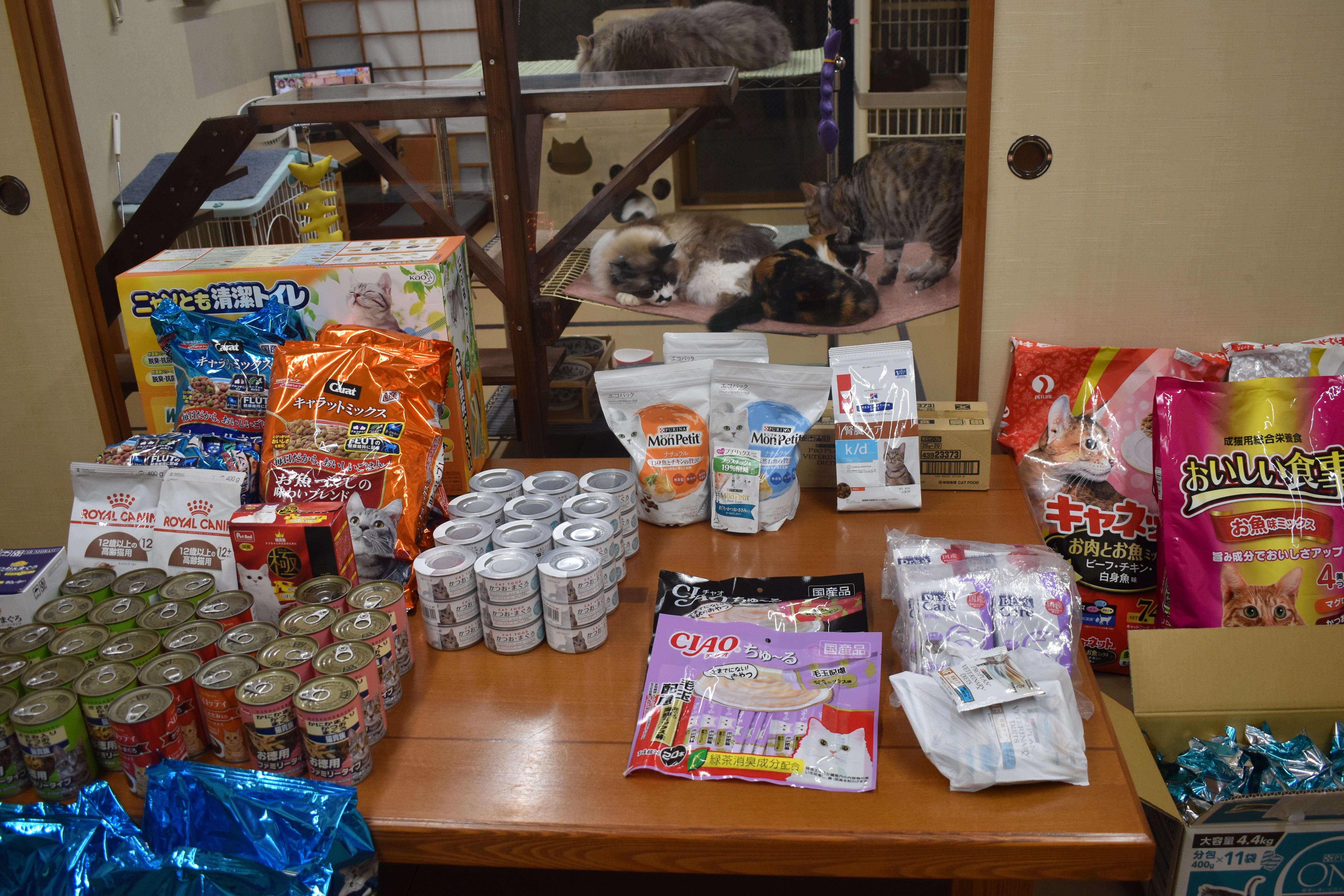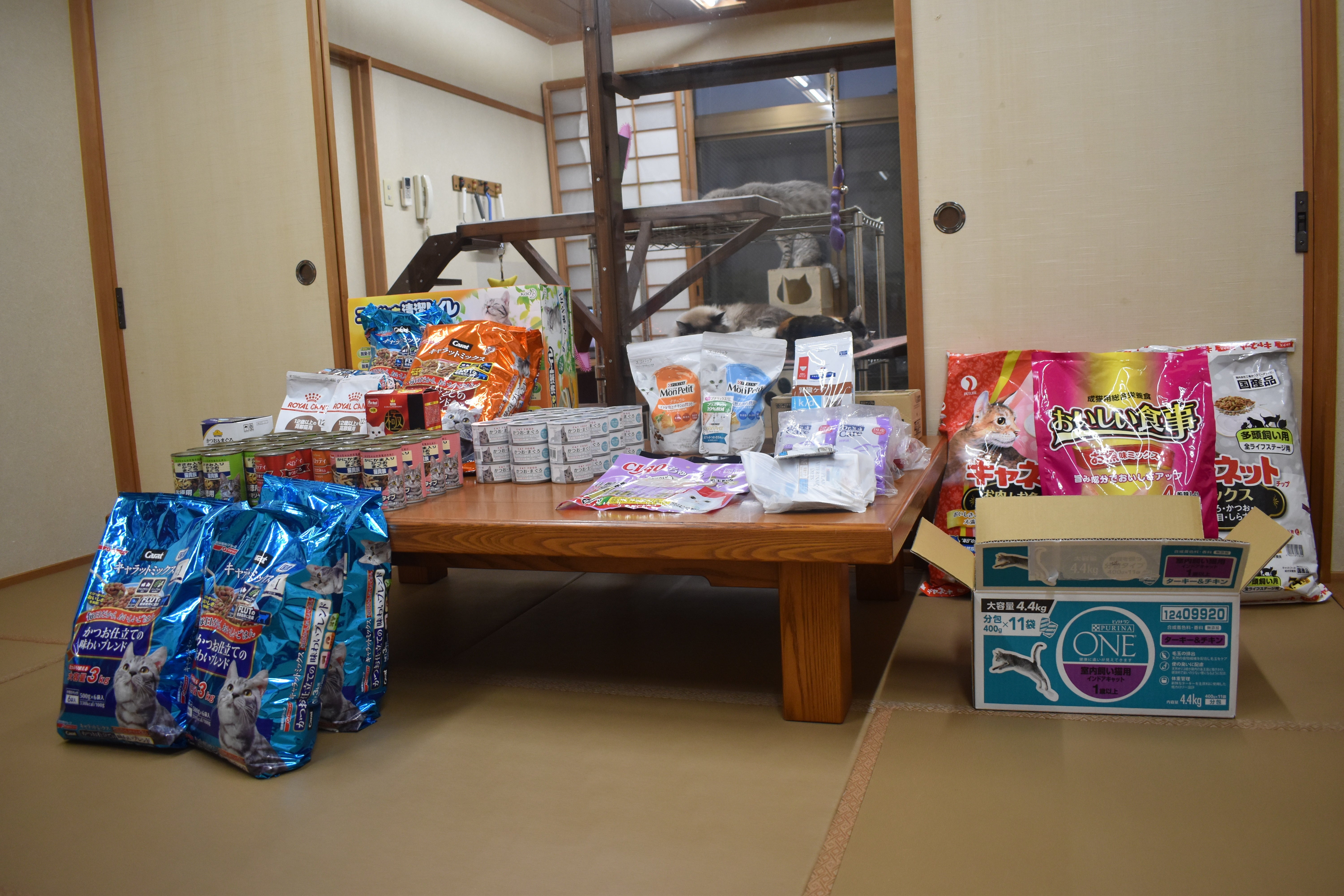 お隣の大分市から動物病院のお医者様ご夫妻が色々な種類の猫の餌を持って来てもくださったそうです。