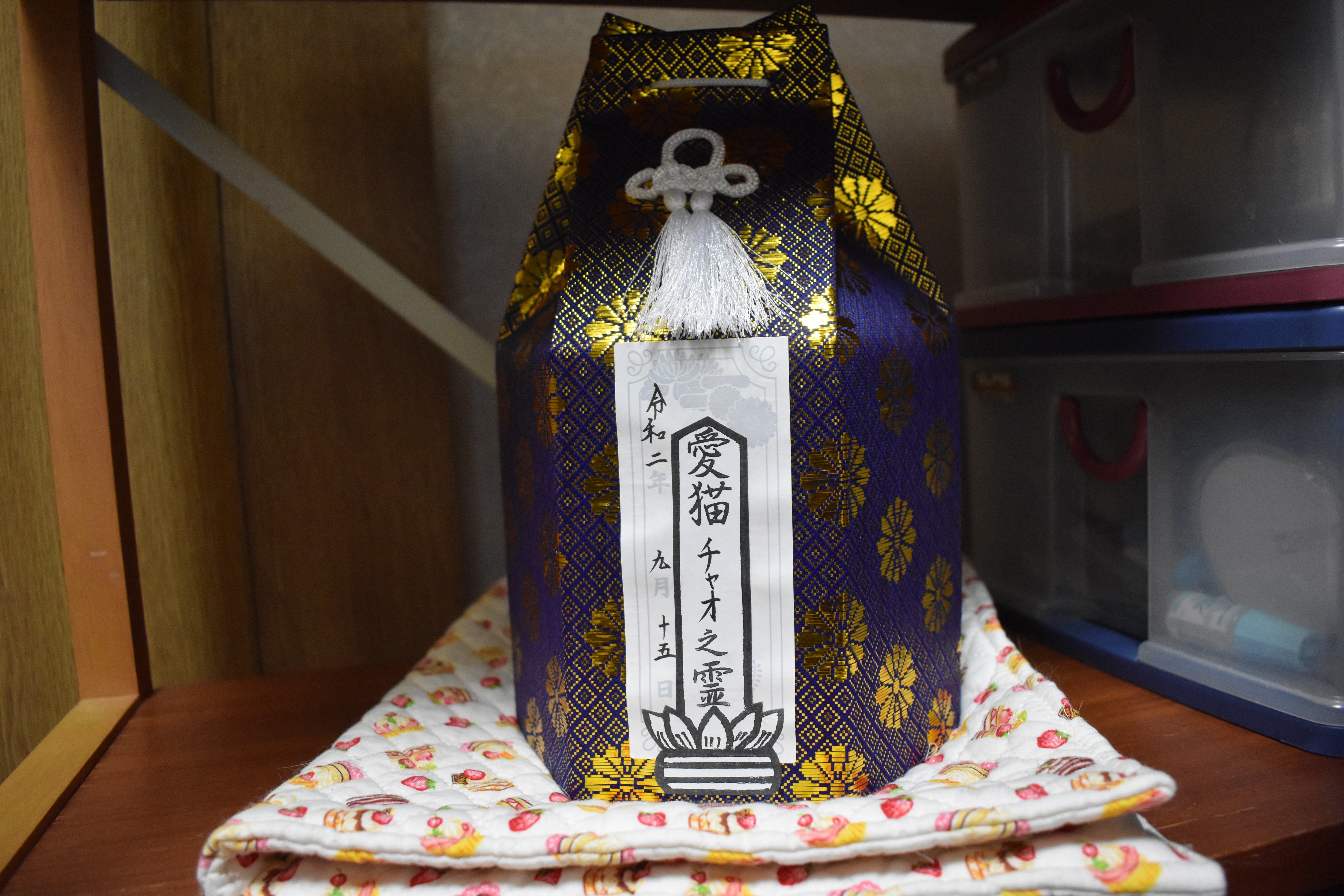 チャオ君はお骨になり、もといたお部屋でミルクちゃん達といっしょにいます。