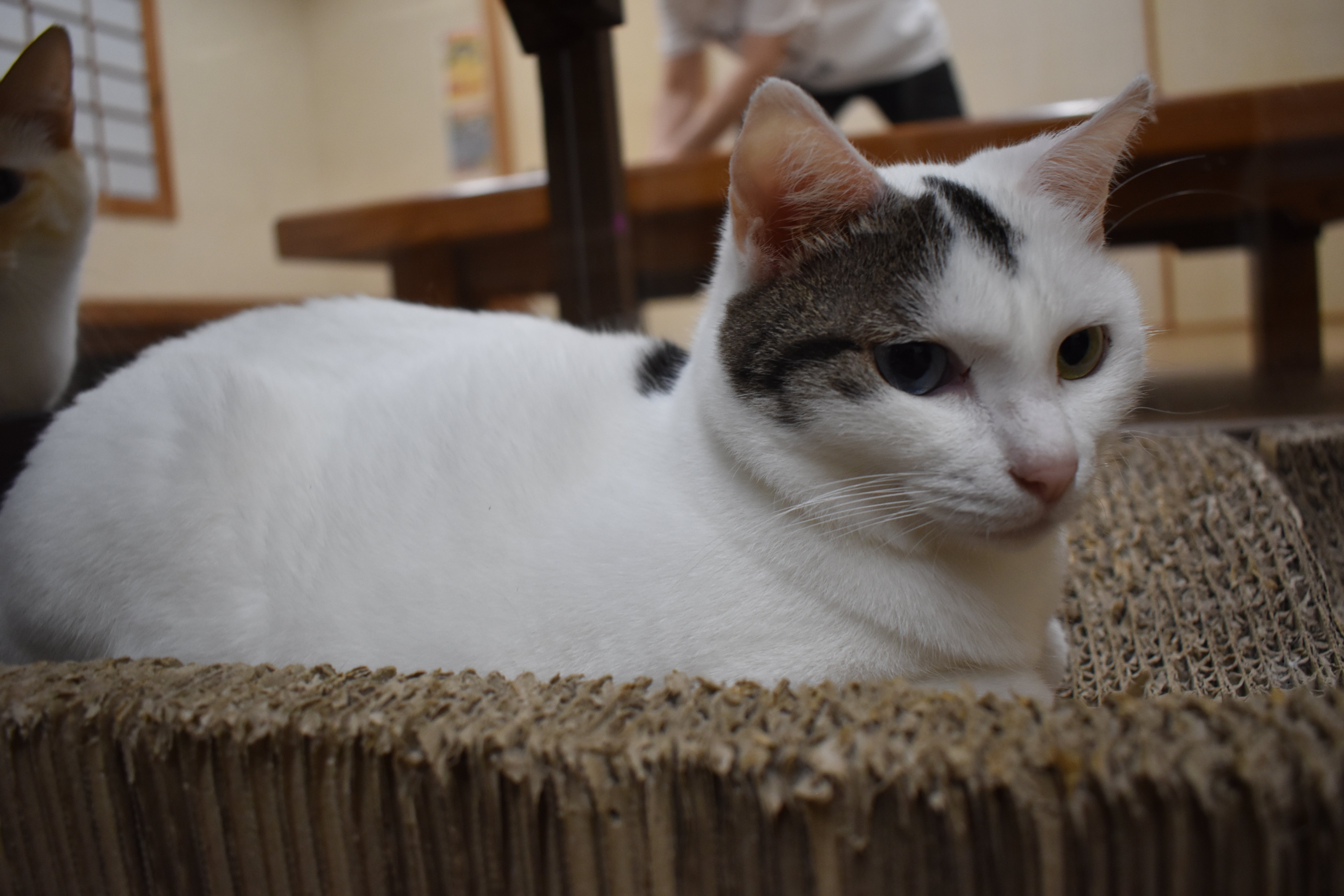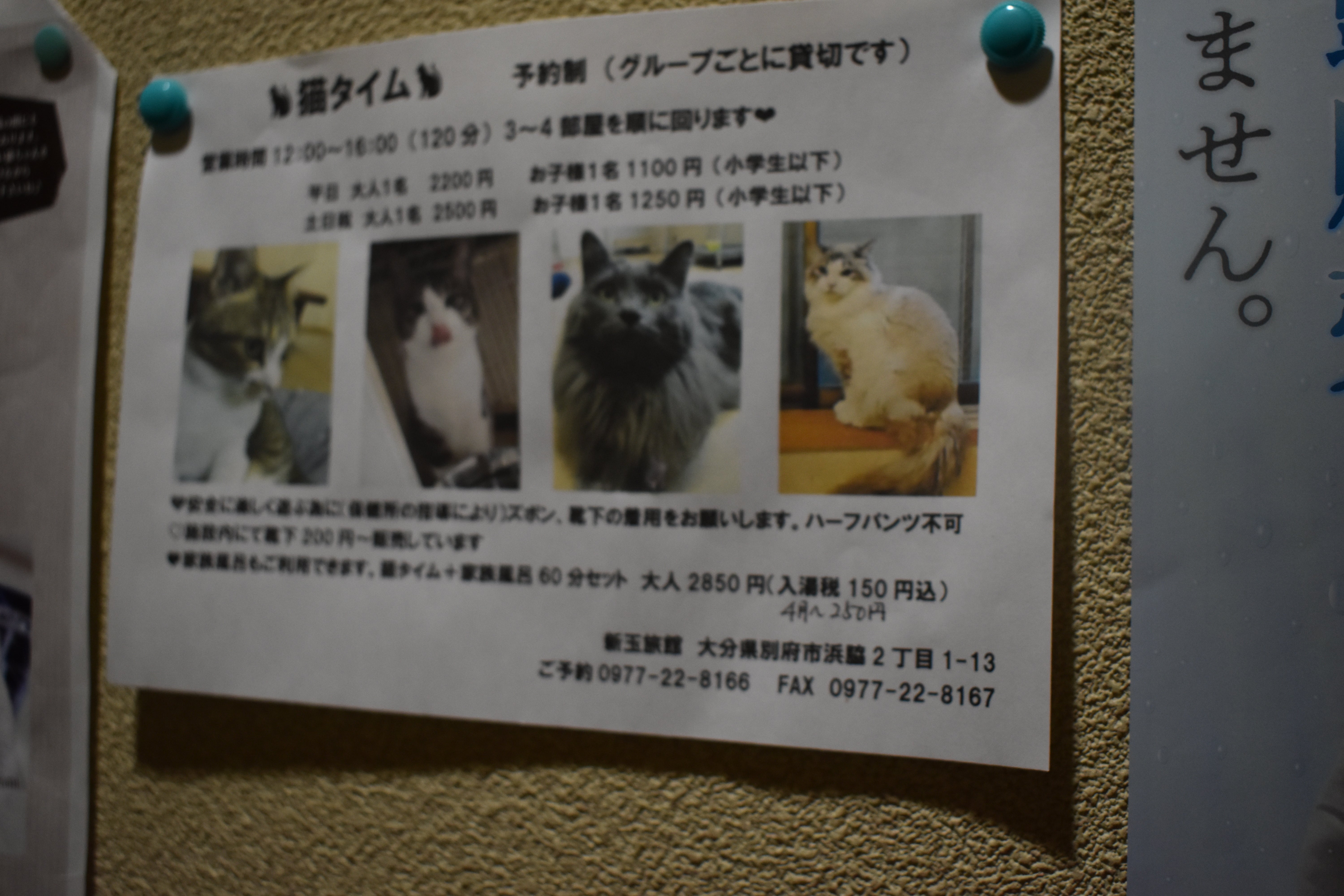 現在はお客様と猫の感染対策をしており、触れ合いタイムはありません。