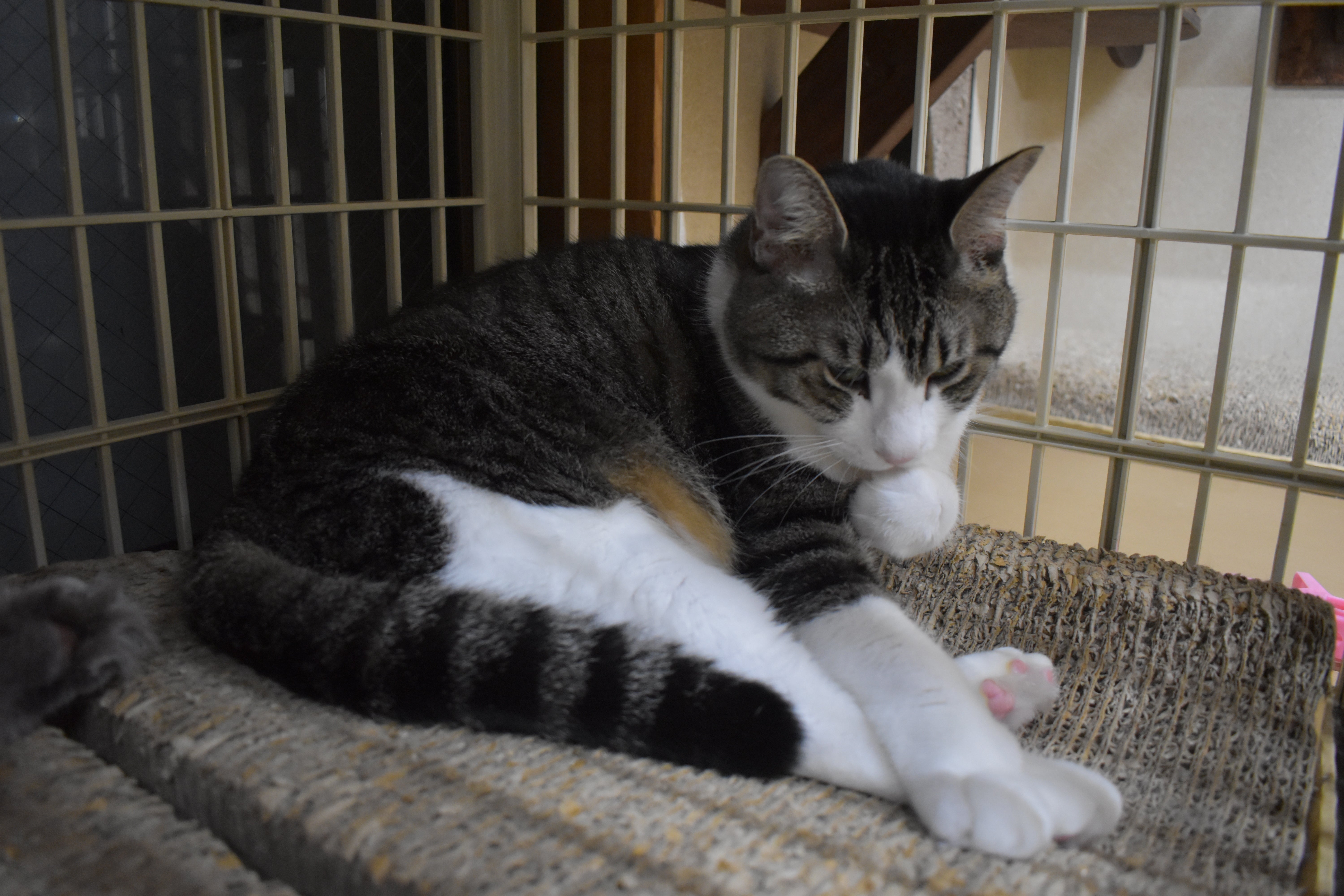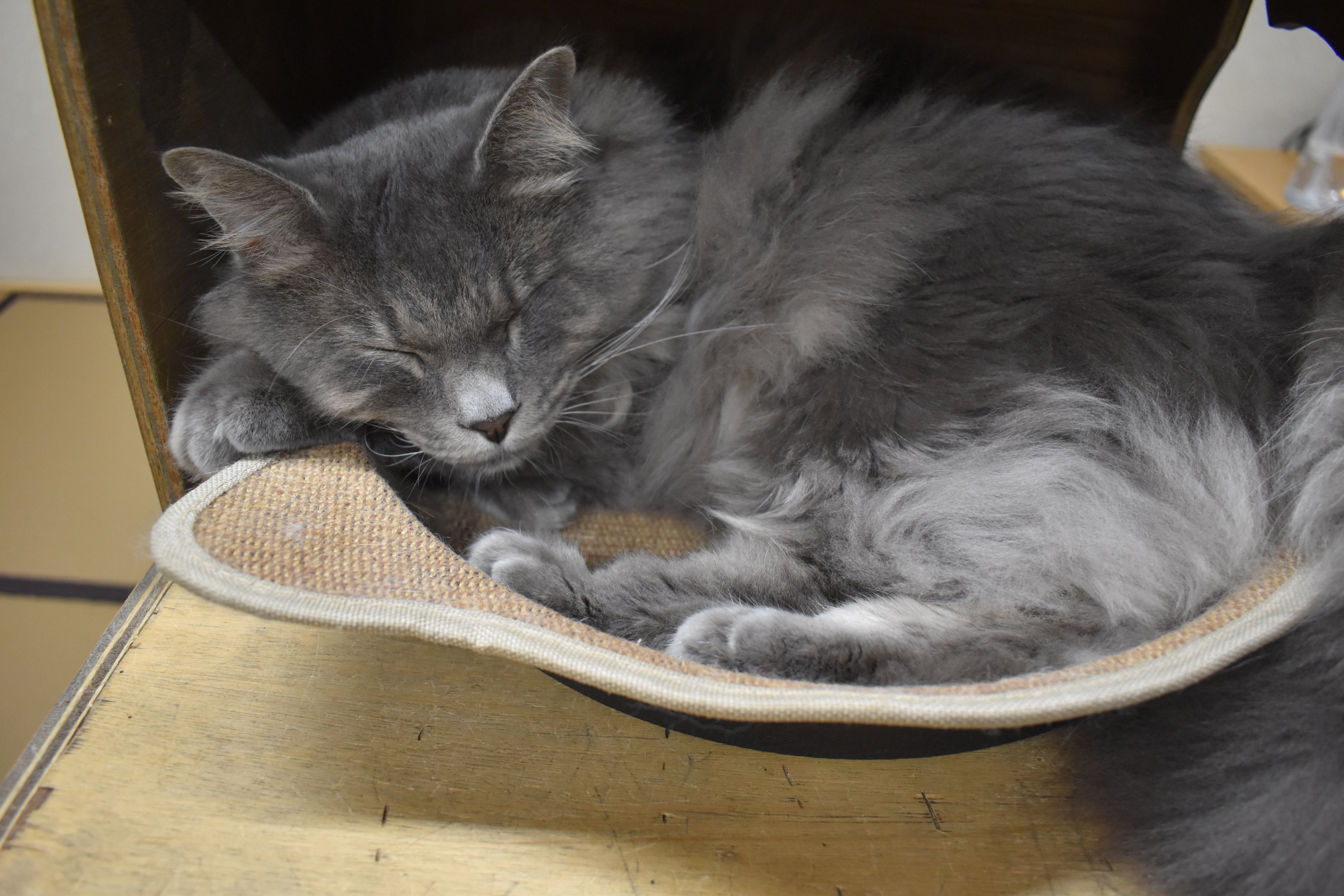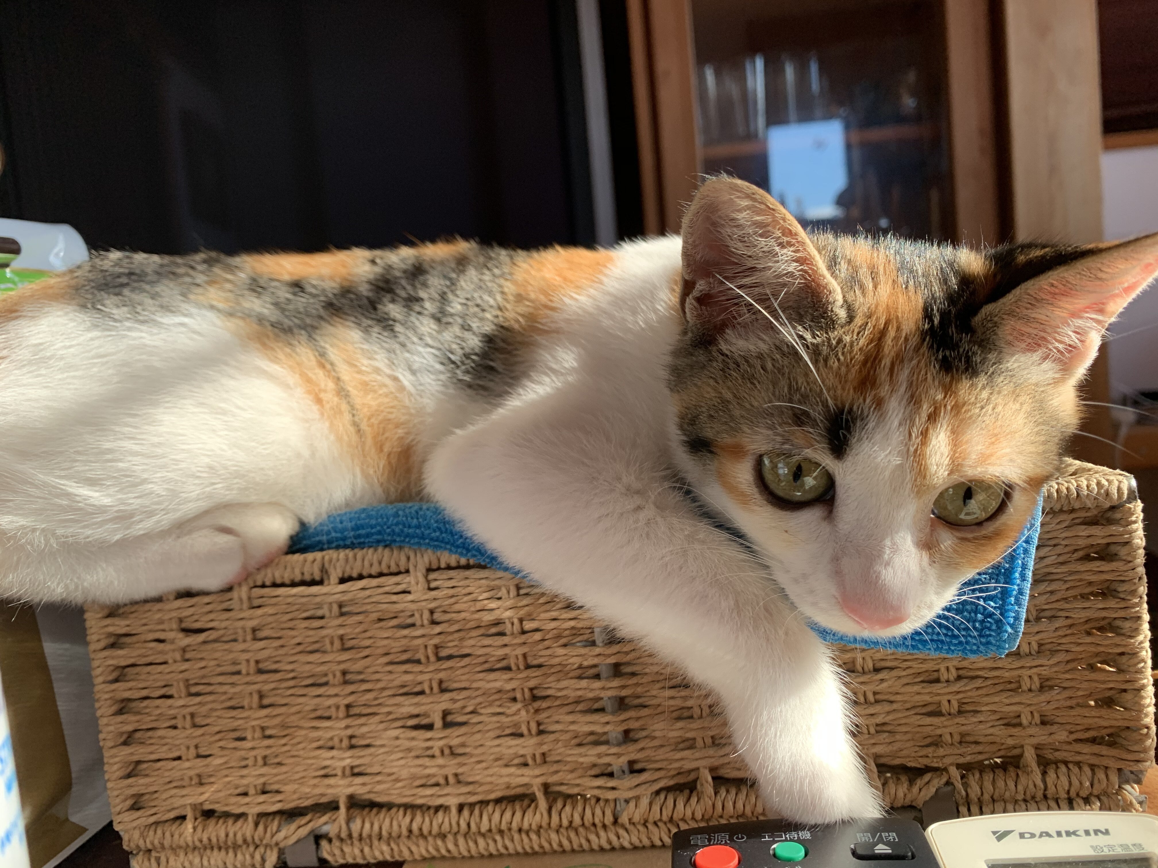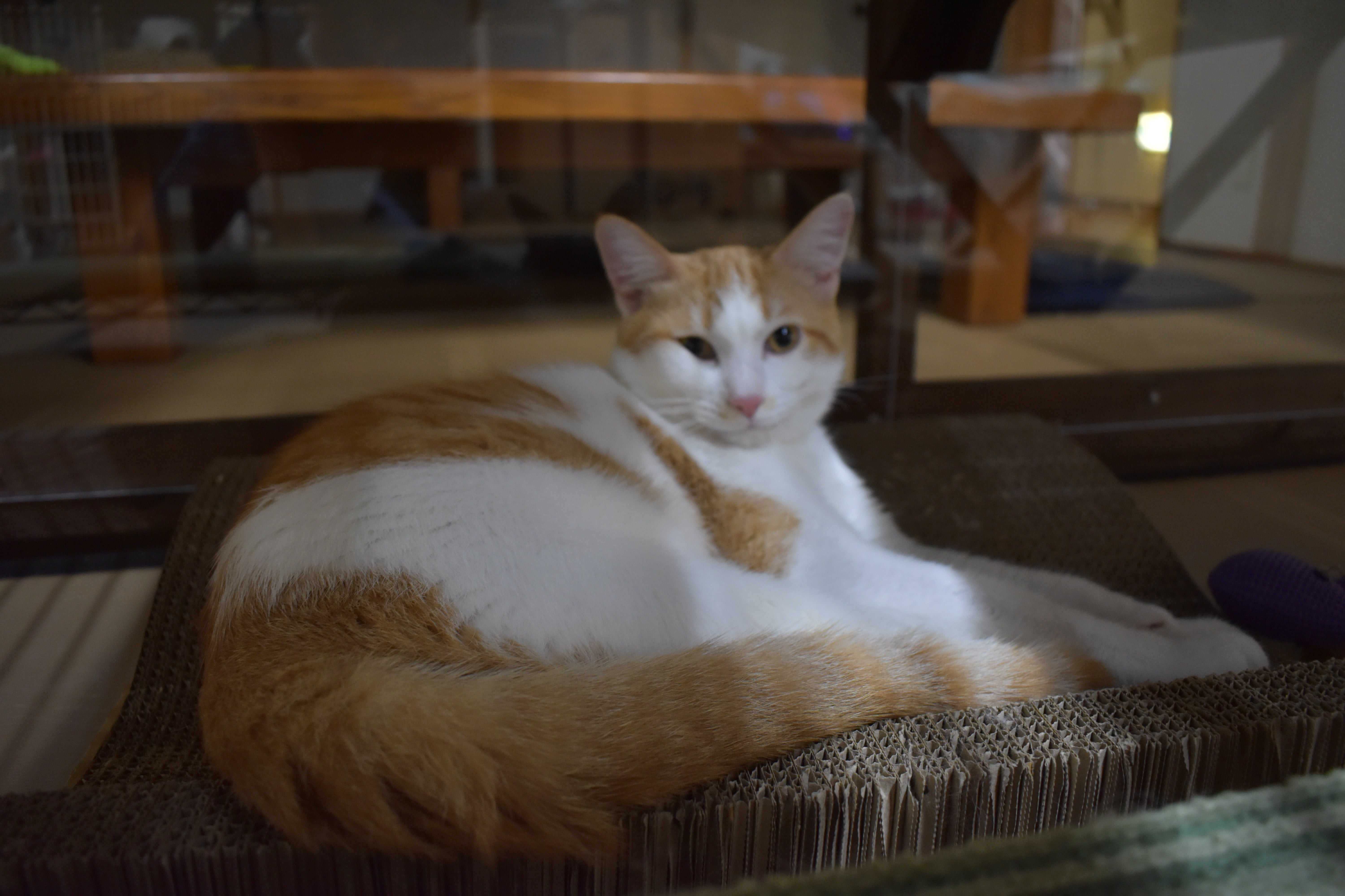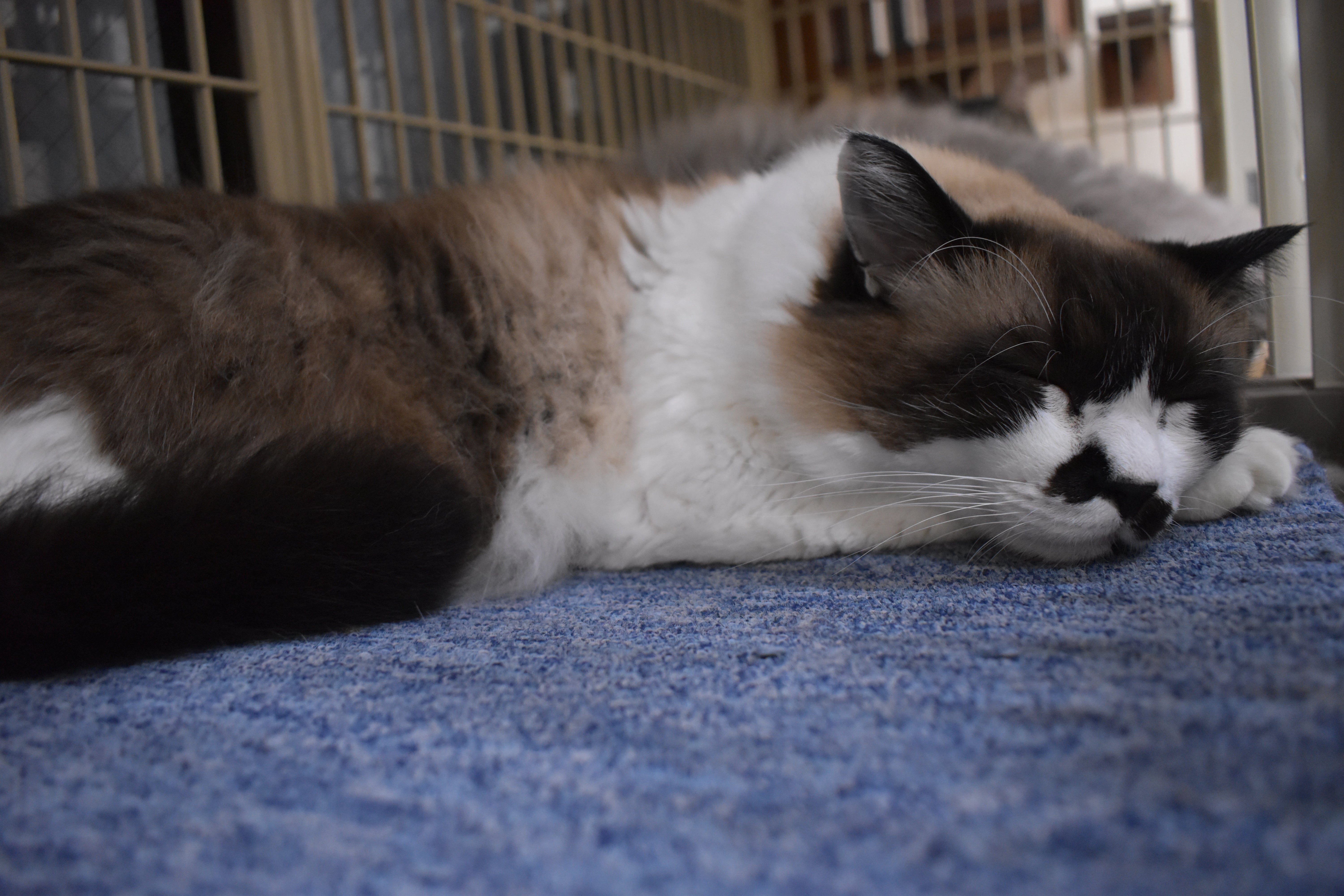 アクリル板越しの部屋のボス! モカ君 堂々ご就寝中でございました。