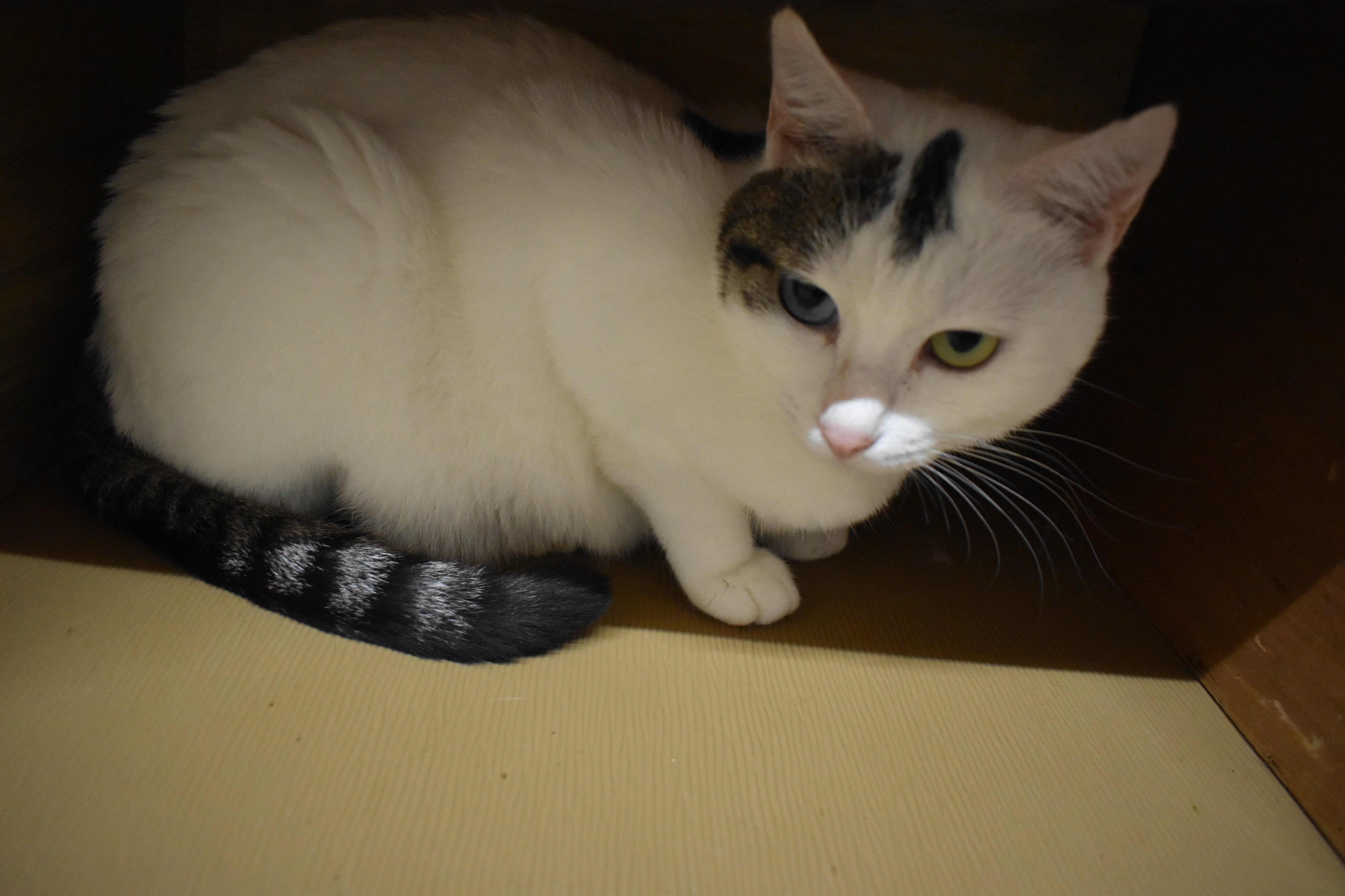 隻眼で横隔膜ヘルニアのみるかちゃん 好奇心旺盛で暴れん坊です。人懐っこい猫懐っこい