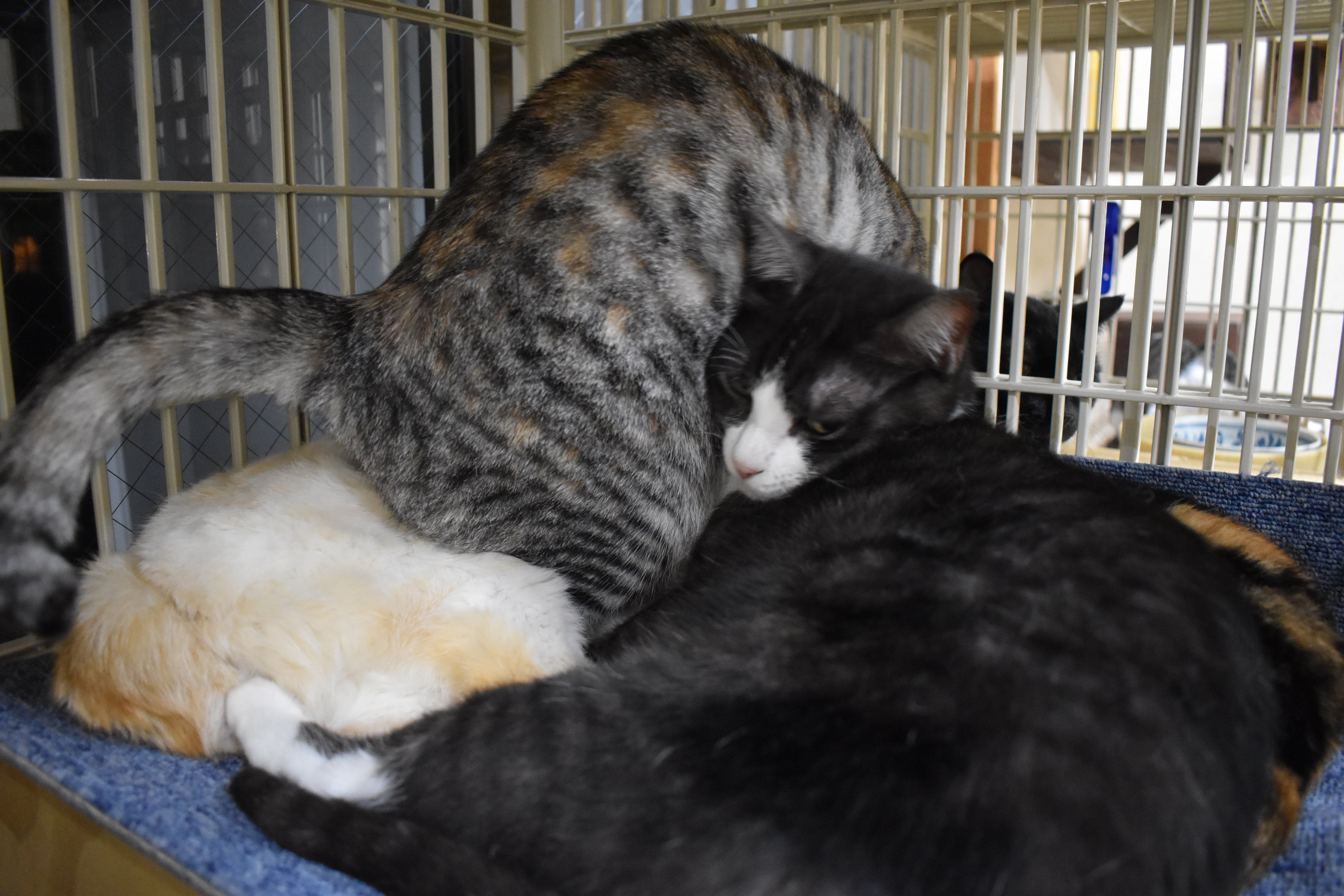フォルテ 三匹ともずいぶん大きくなりました。やはり発情し去勢手術予定です。譲渡先が決まっていないため、全て新玉旅館の自費で手術をします。