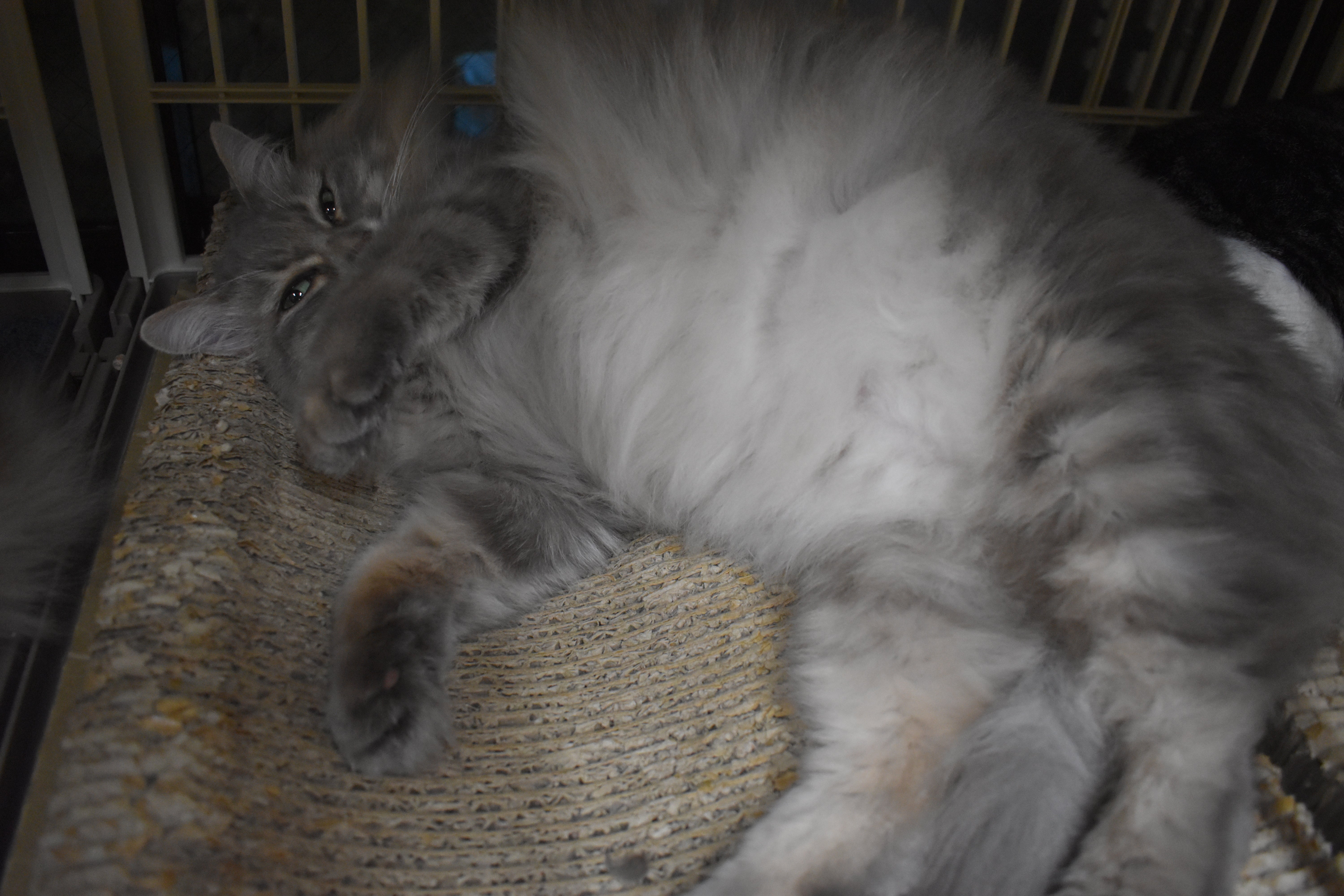 フサフサなお腹を見せてごろごろ カノンちゃん