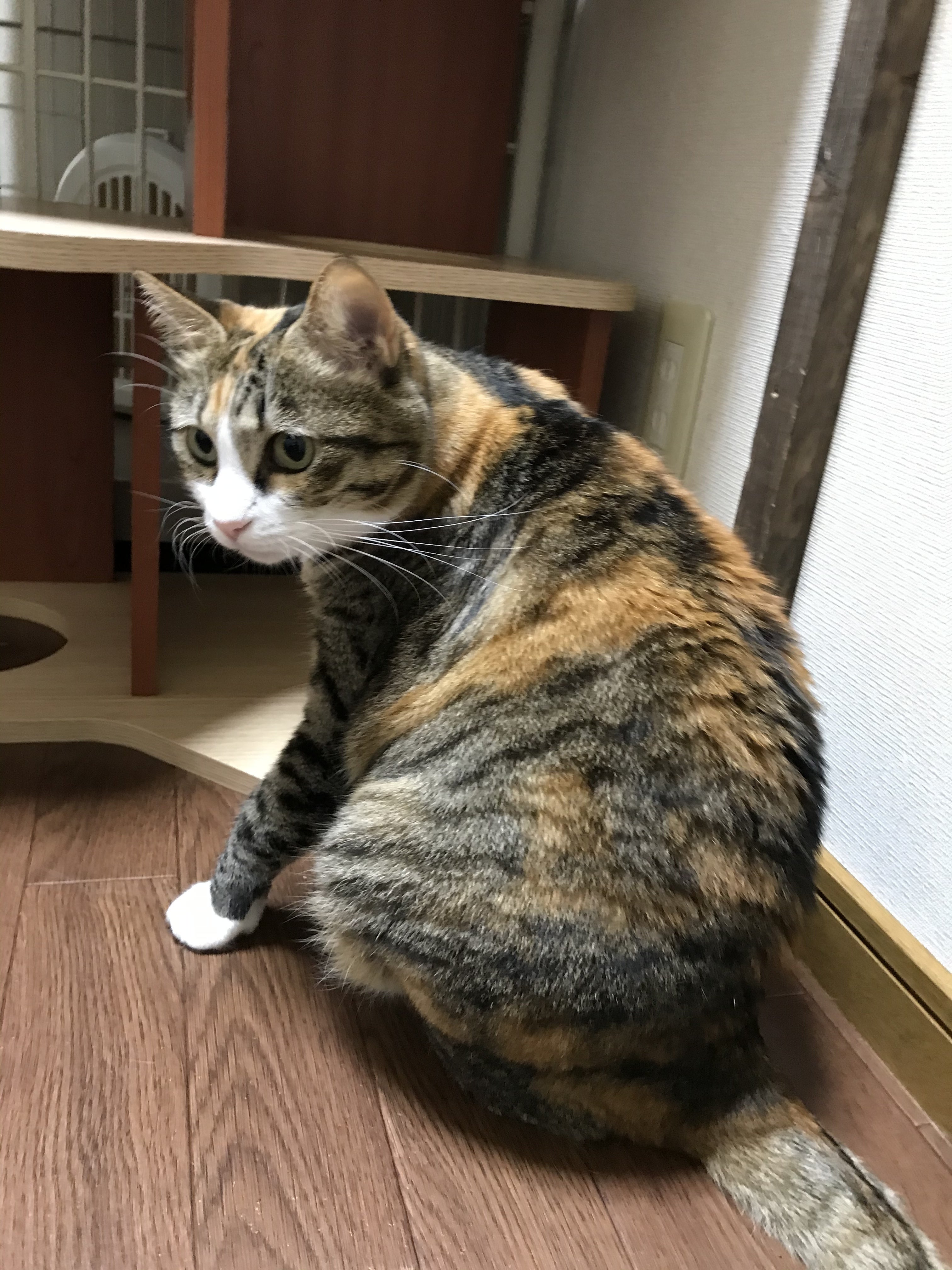 ご飯を食べついでに背中を向けて撫でさせてくれるようになったチロちゃん