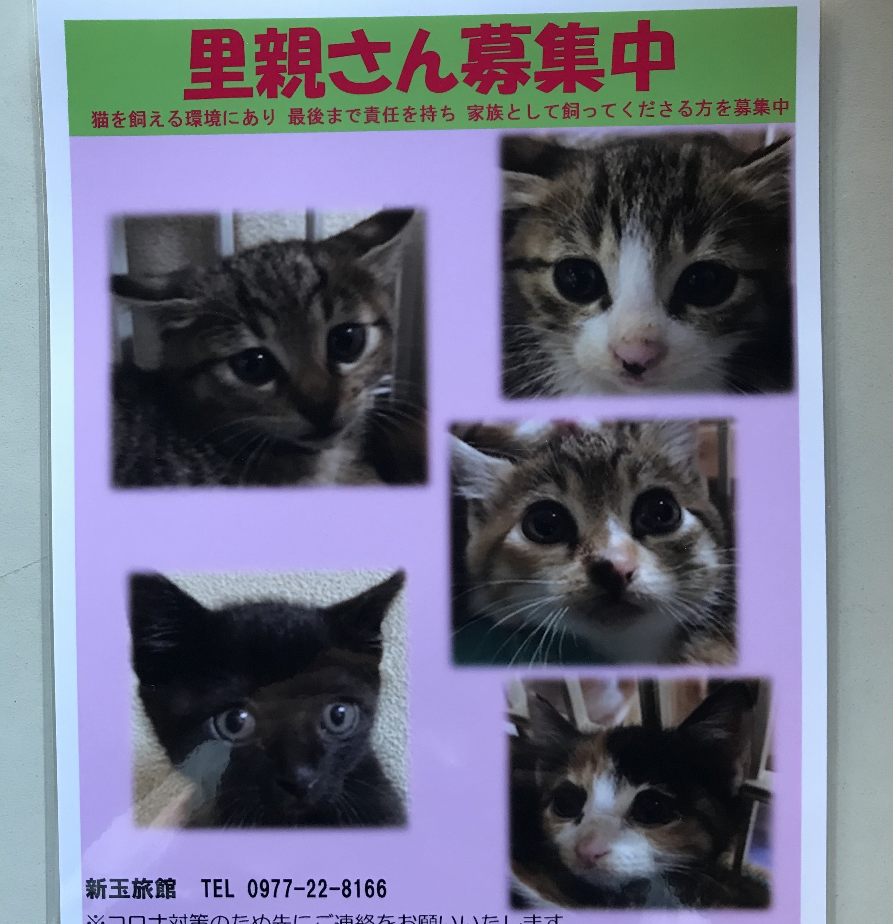 家族として最後まで責任を持って迎えてくださる方がいらしたら、新玉旅館までご連絡下さい。