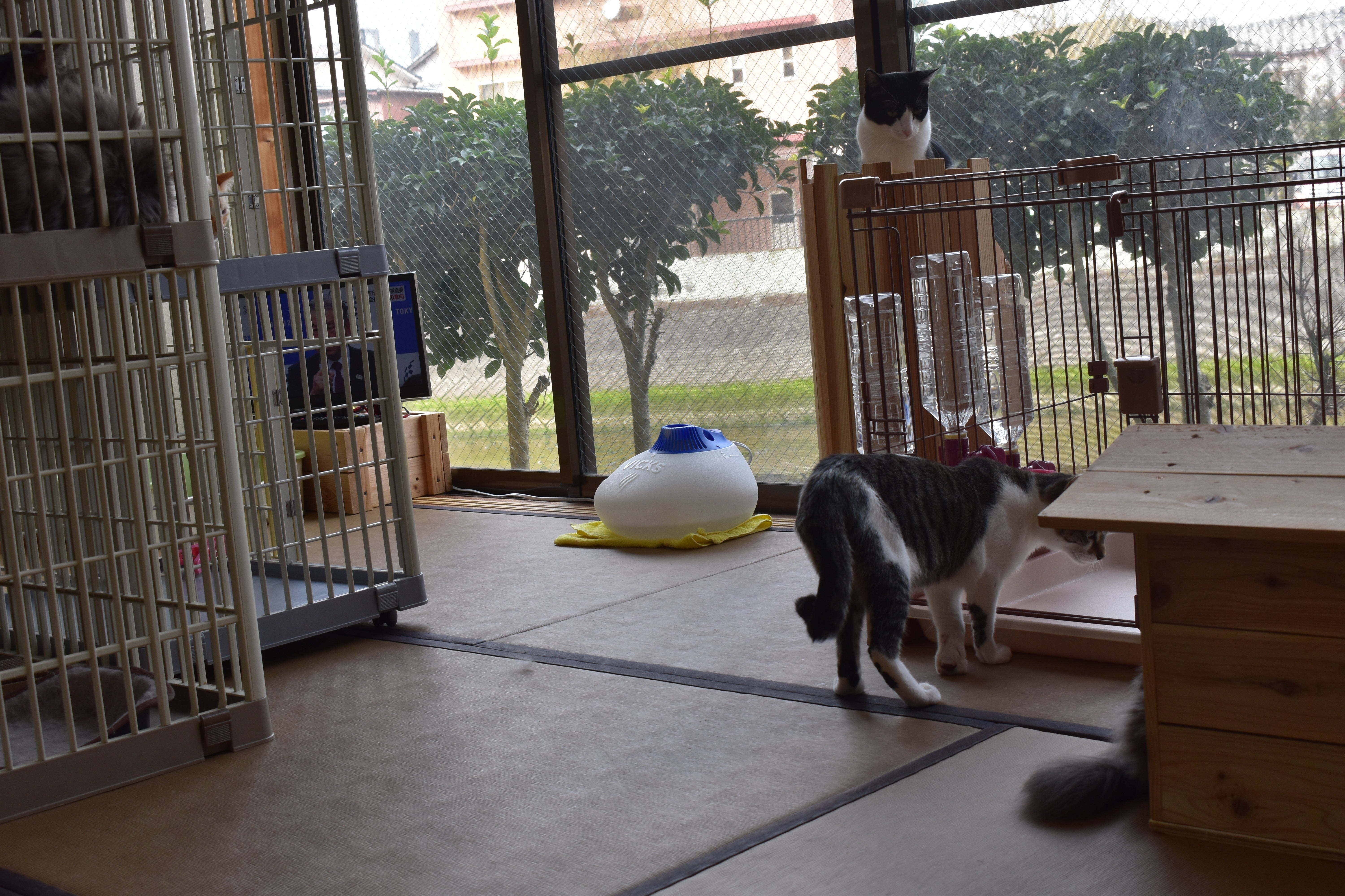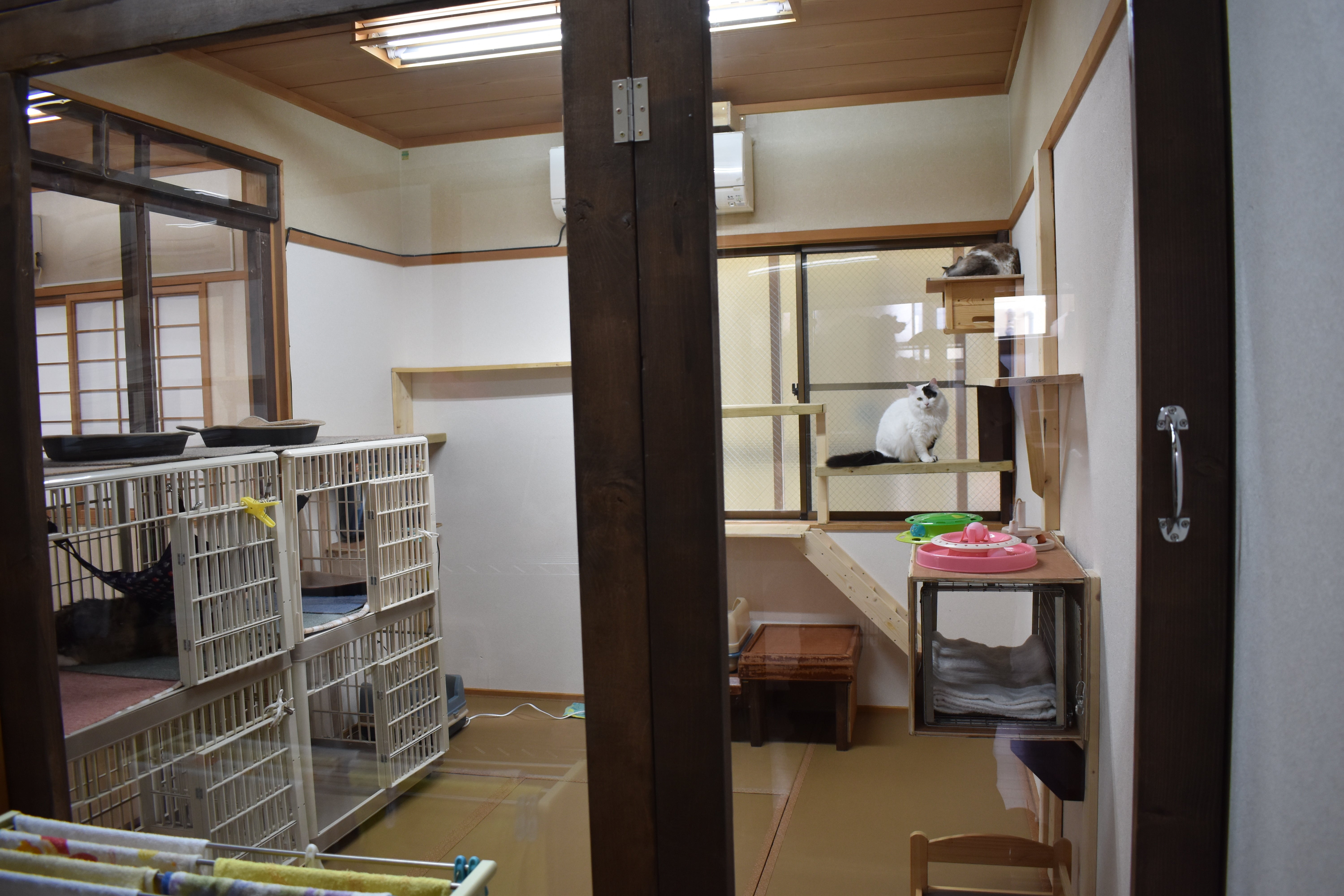 アクリル板越しに猫が見られる部屋の反対側に譲渡予定の子の部屋を作ったそうです。