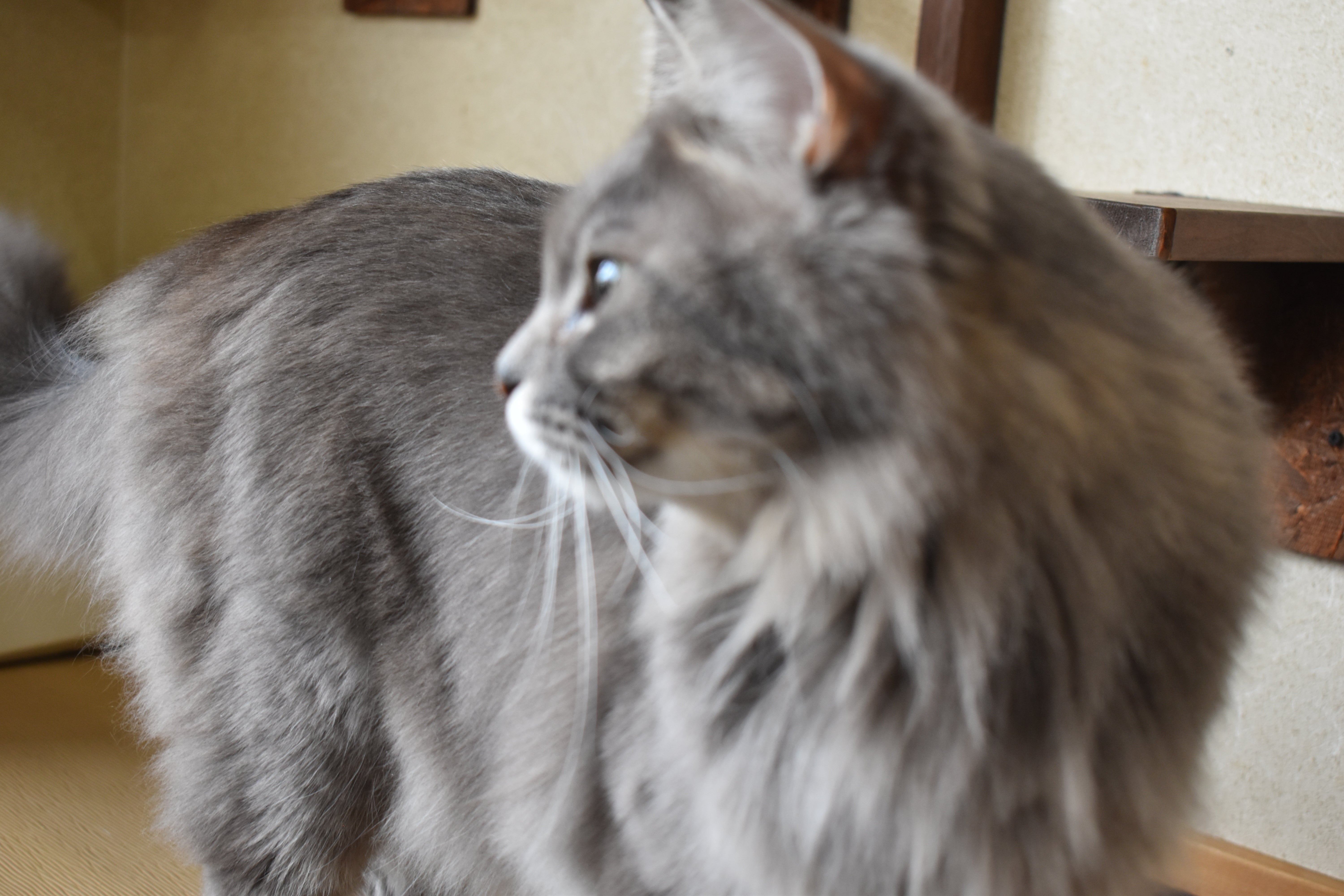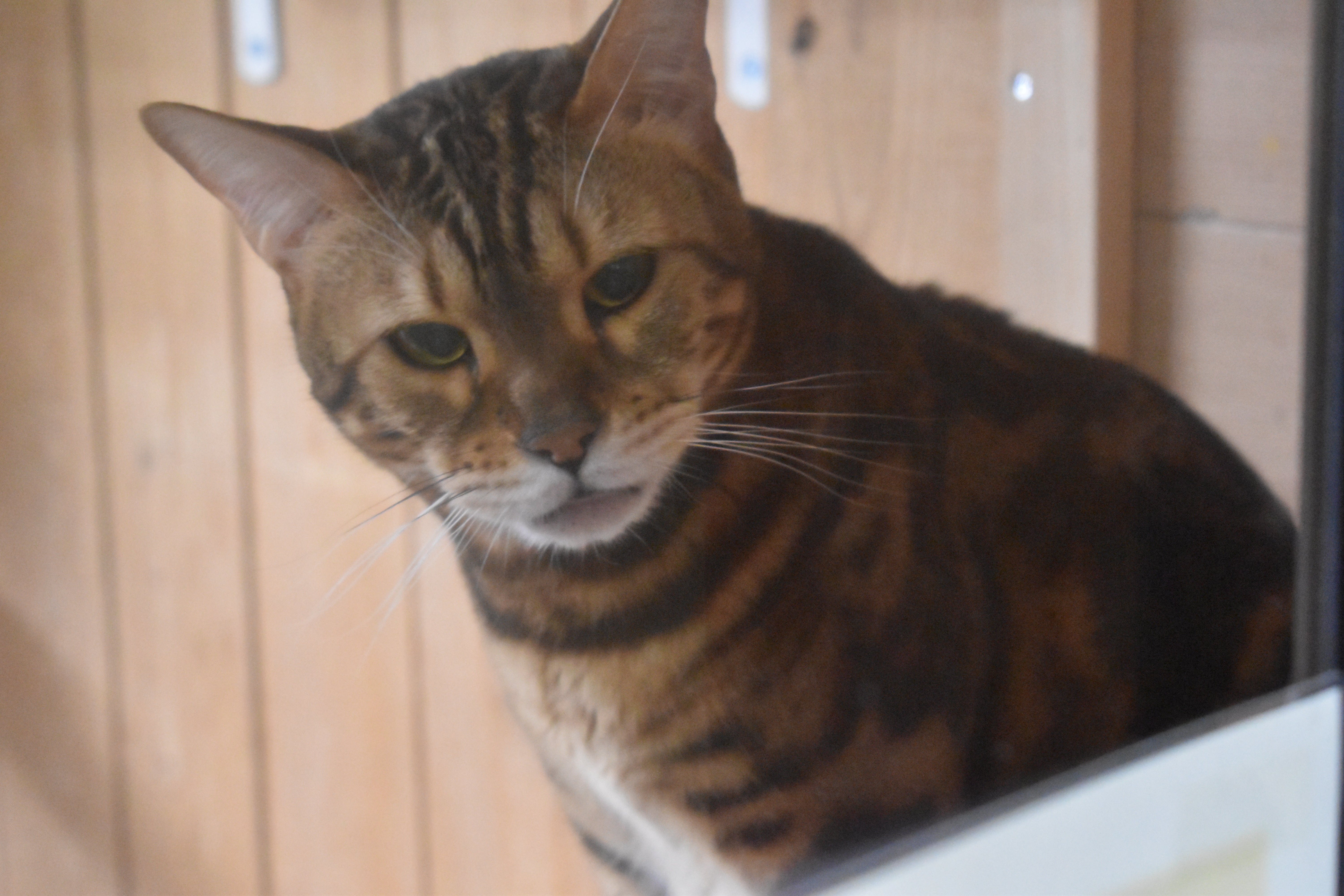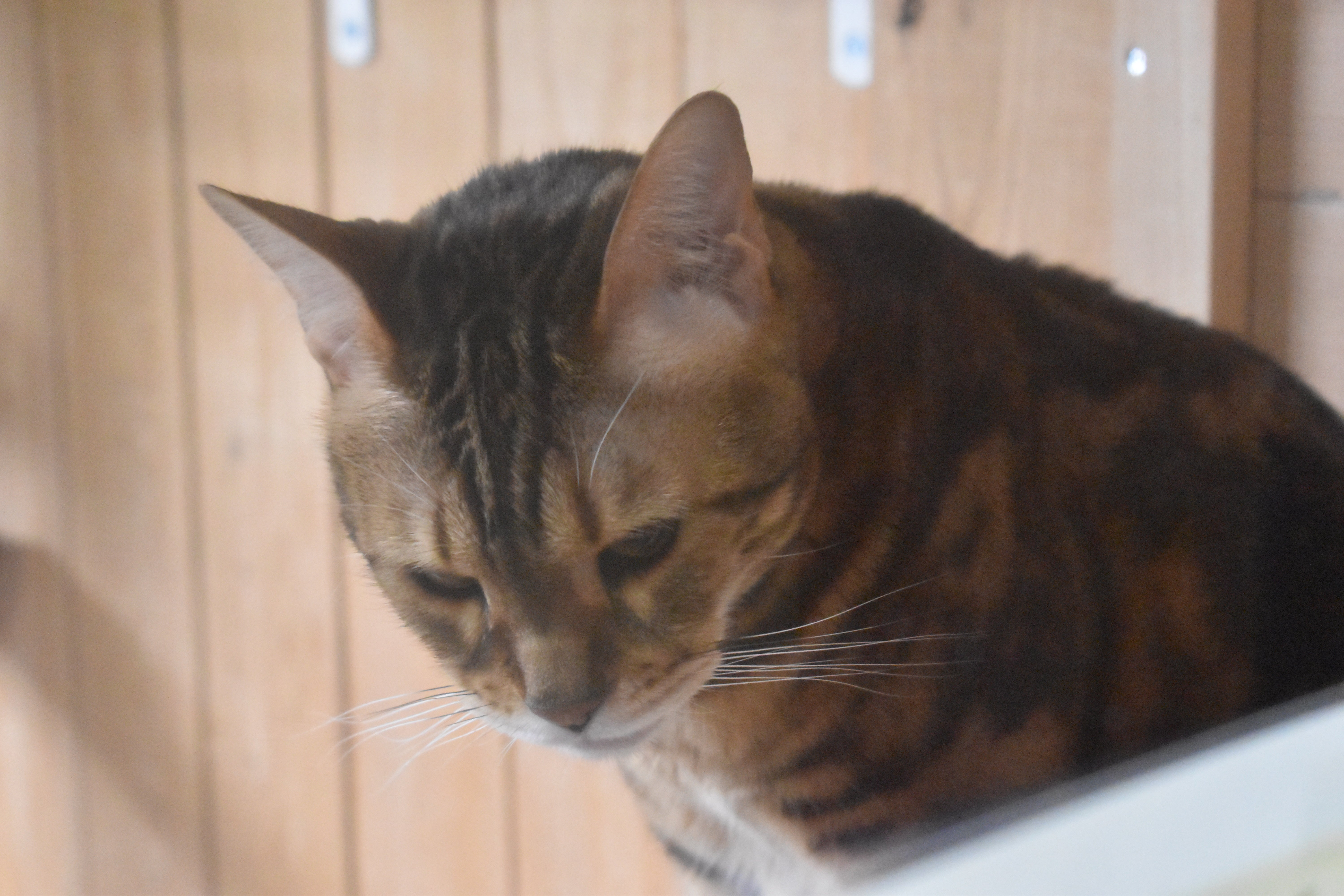 反対側の部屋にいるベンガル種 アレルギーとテンカンのあるモーガン君