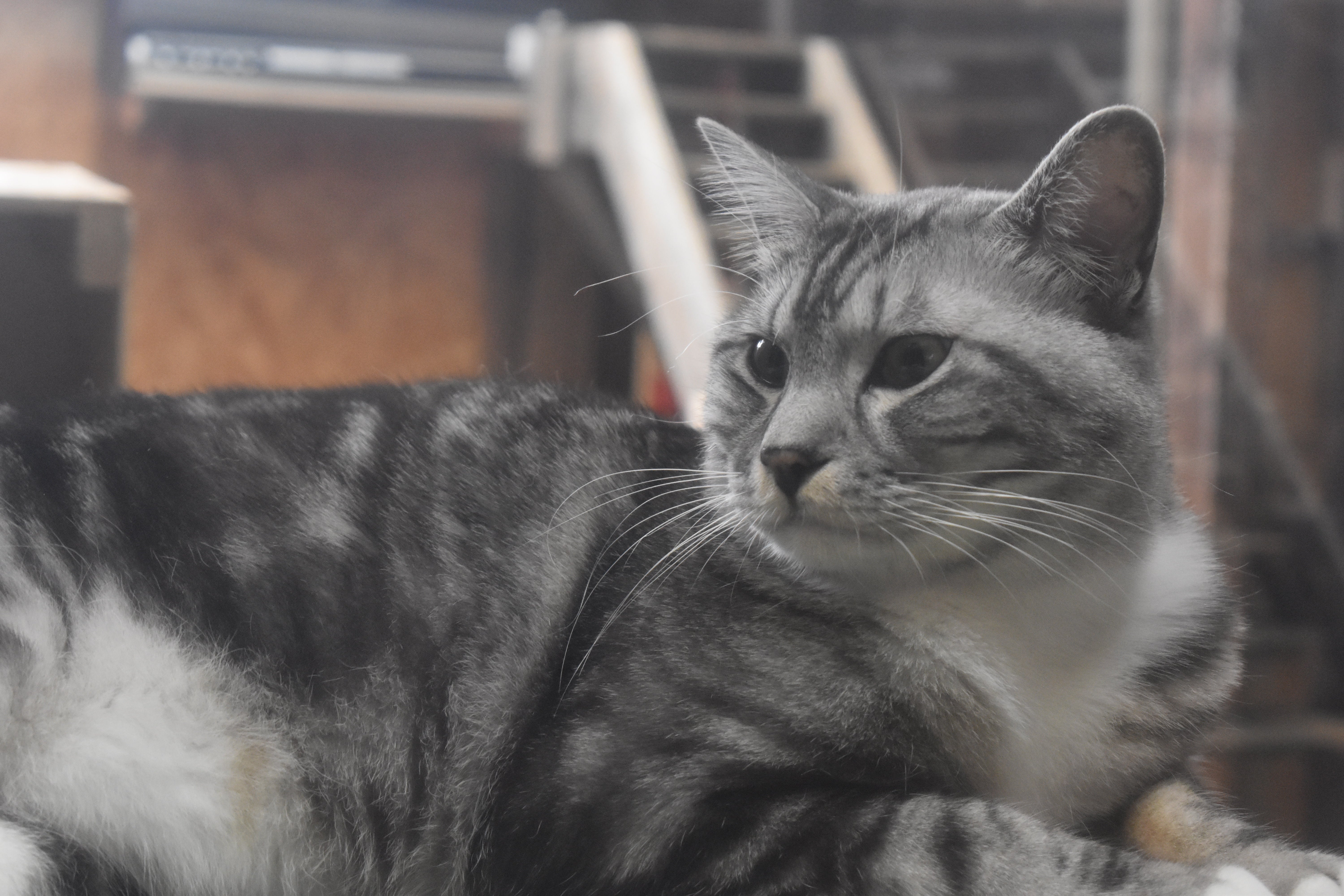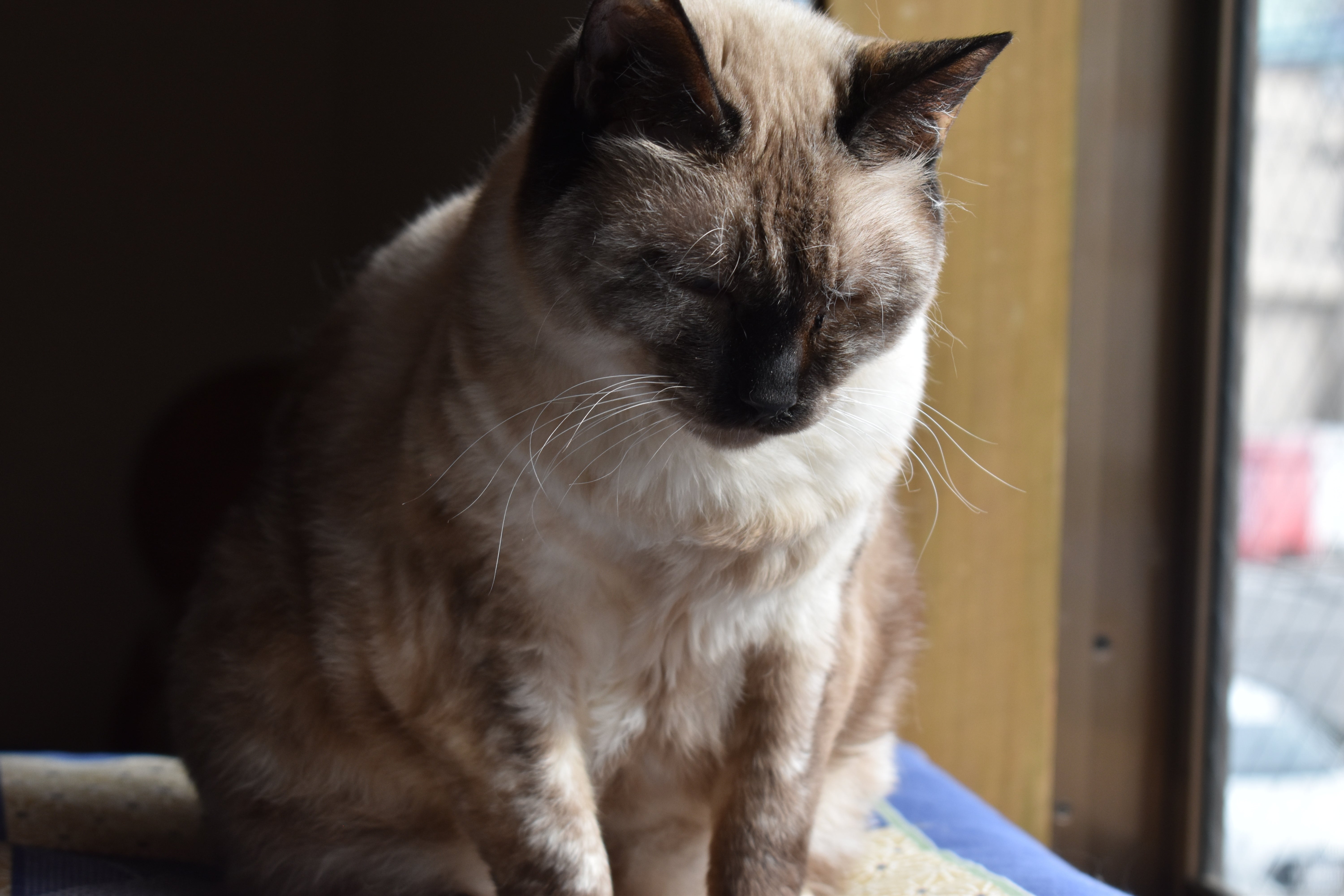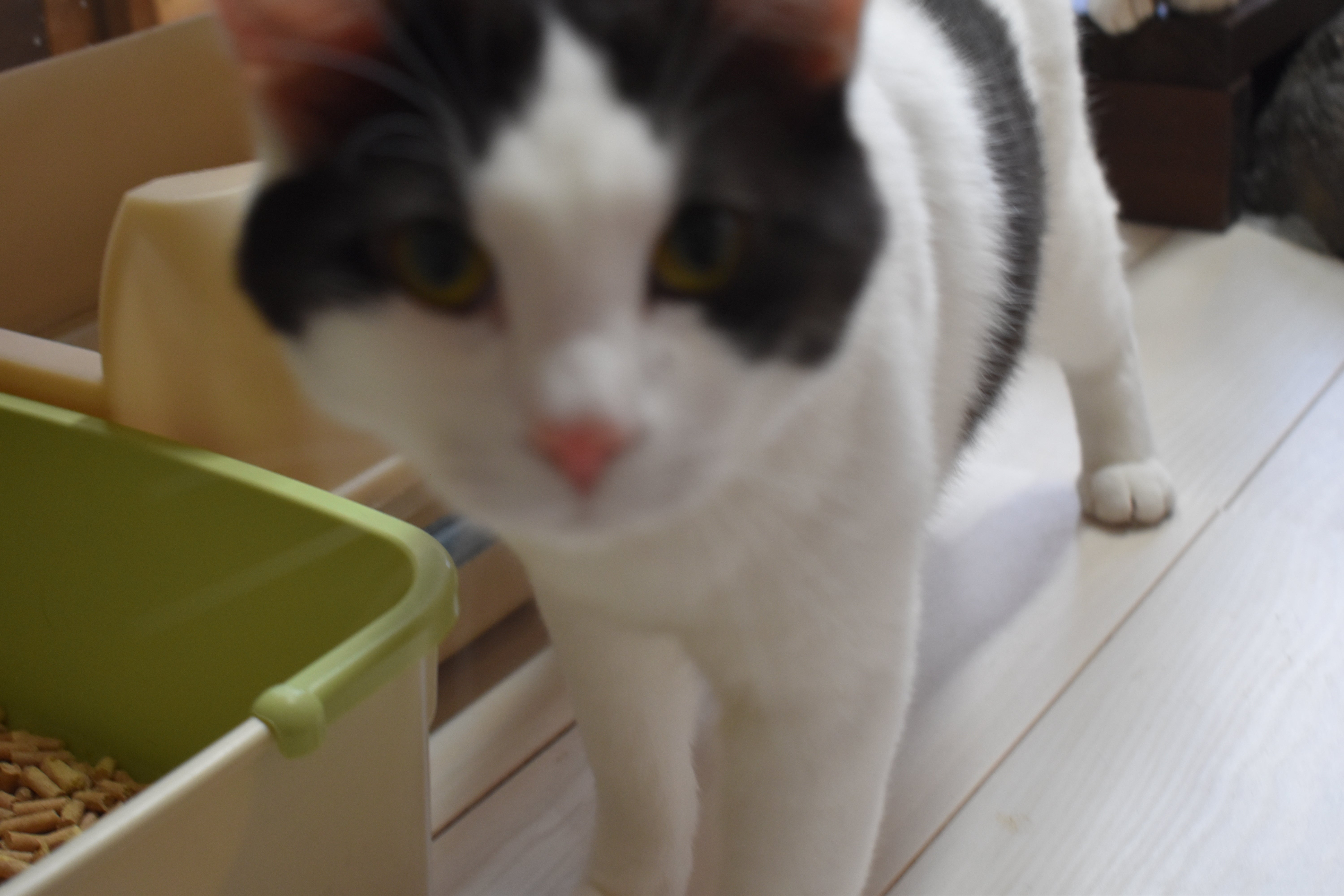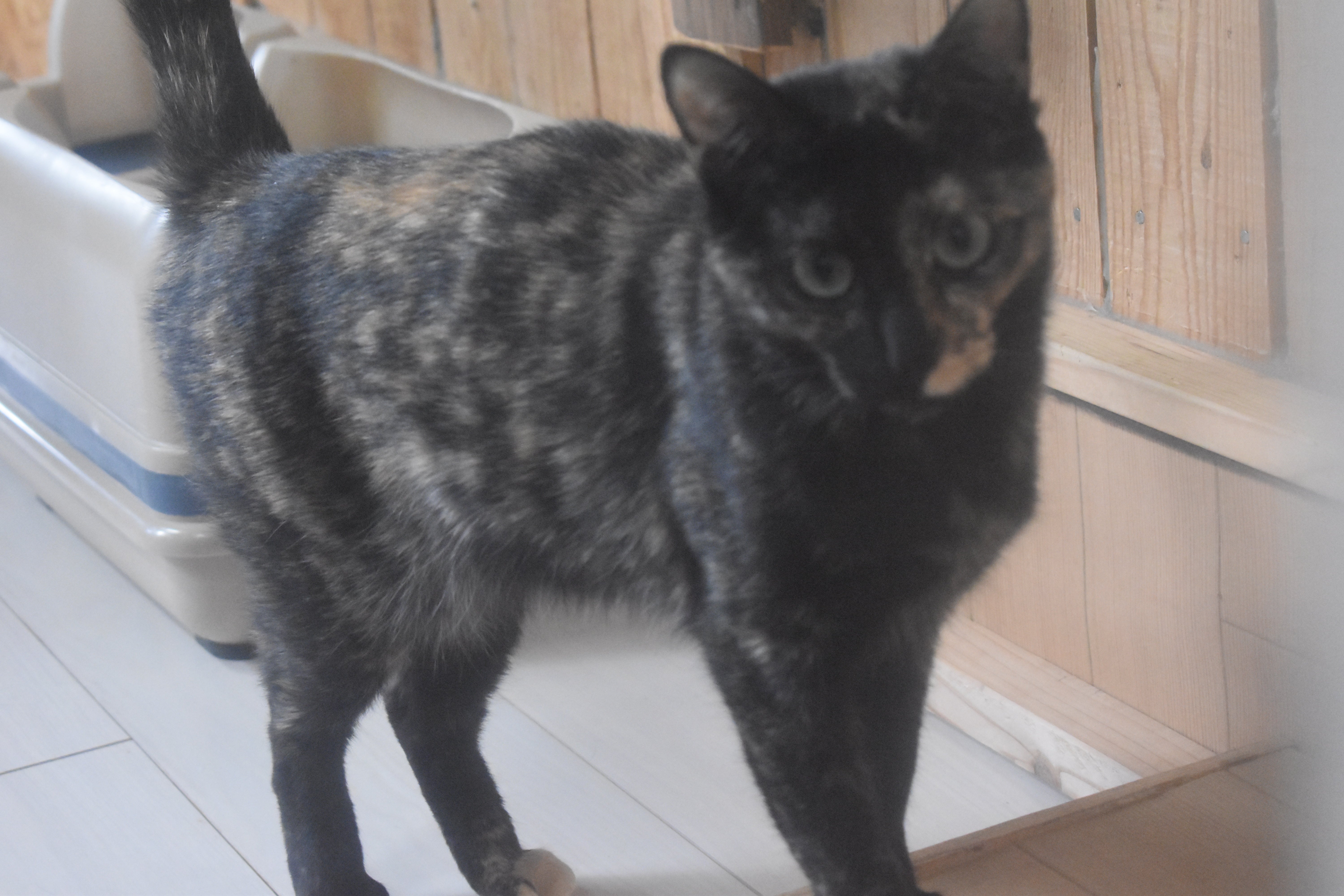 若干目つきがするどくて大抵一匹で箱に入っています。時折モカ君から怒られます。
