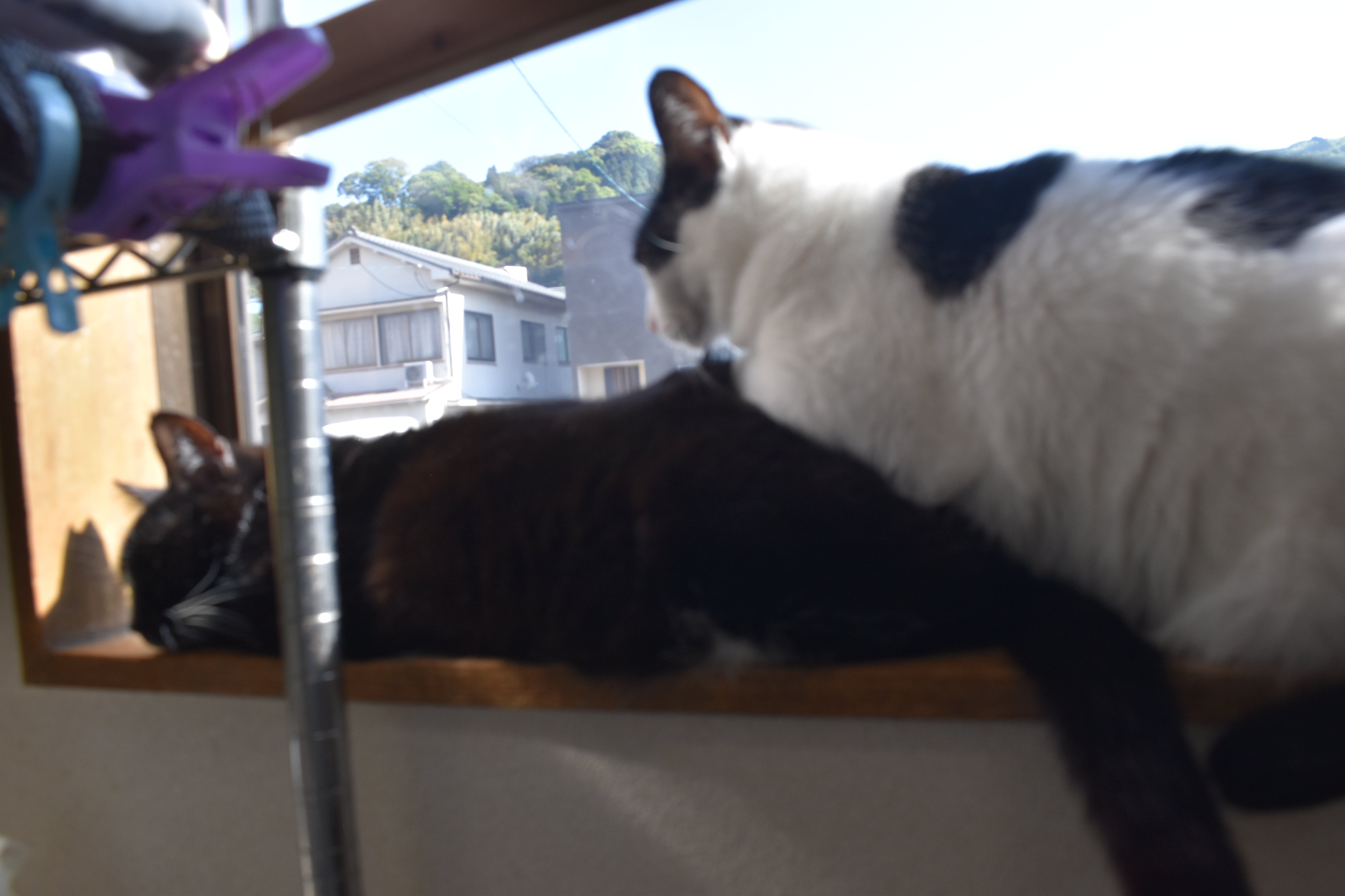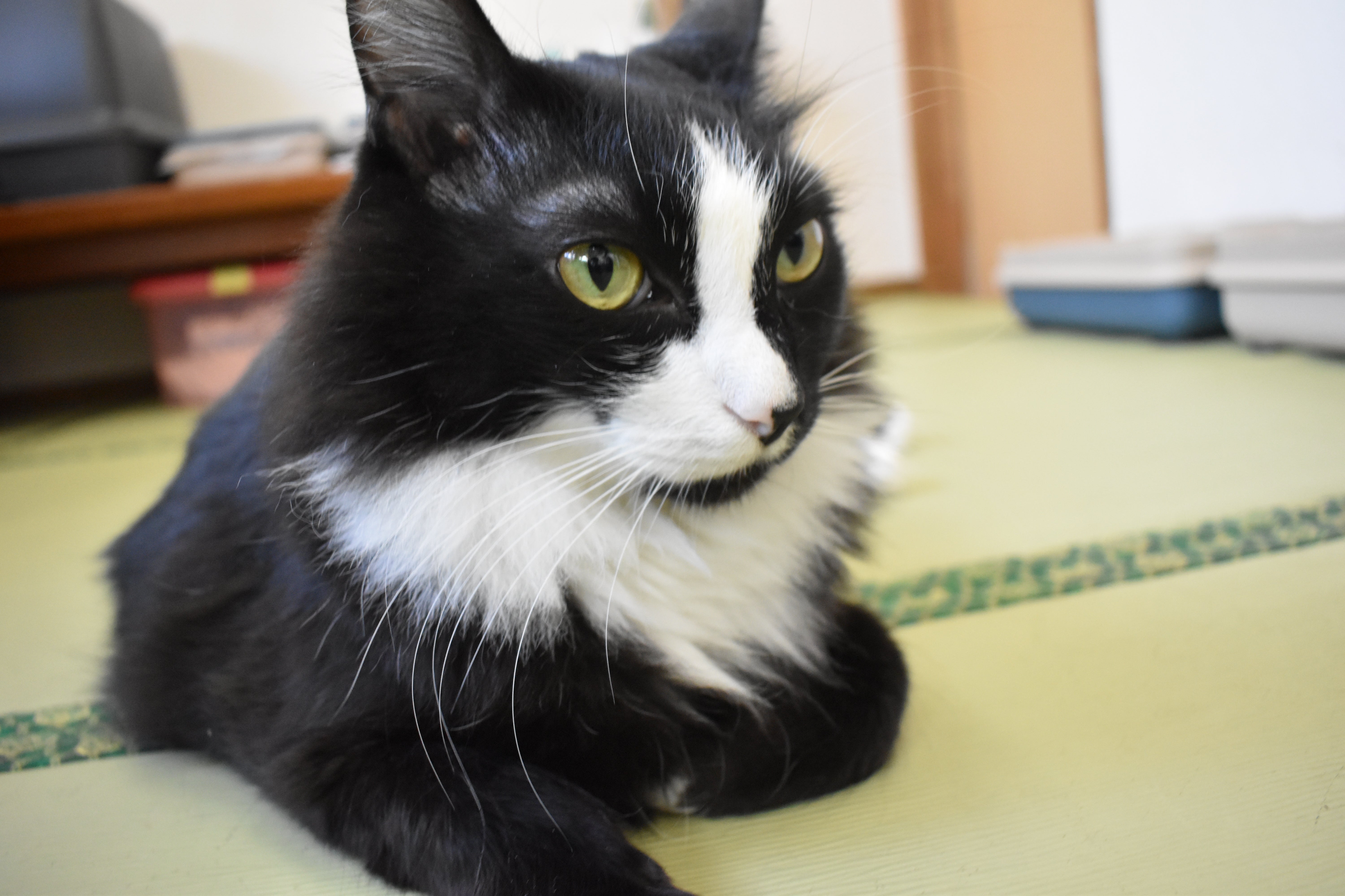今回は旅館の玄関を入ってすぐ右手の部屋、外からは窓越しにモノトーンの猫まみれが垣間見られる「ハチワレ猫ちゃん」部屋にやっとたどりつきました。現在は19匹いるそうです。